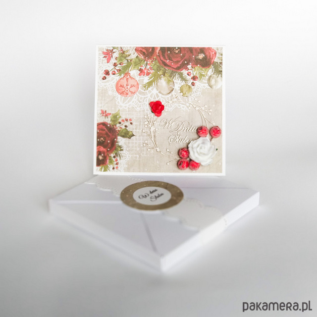 Kartka w środku jest czysta, do ręcznego wypisania życzeń.