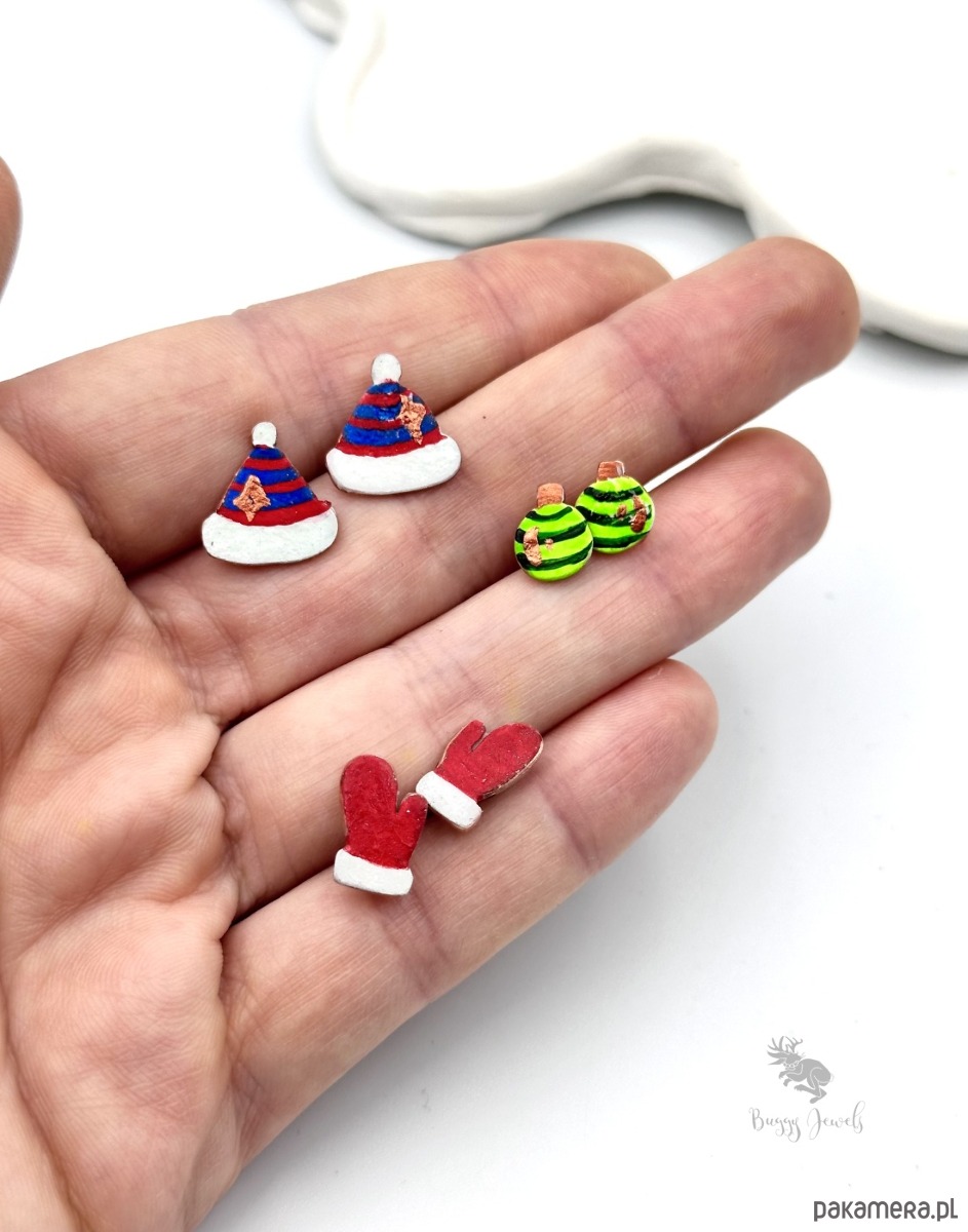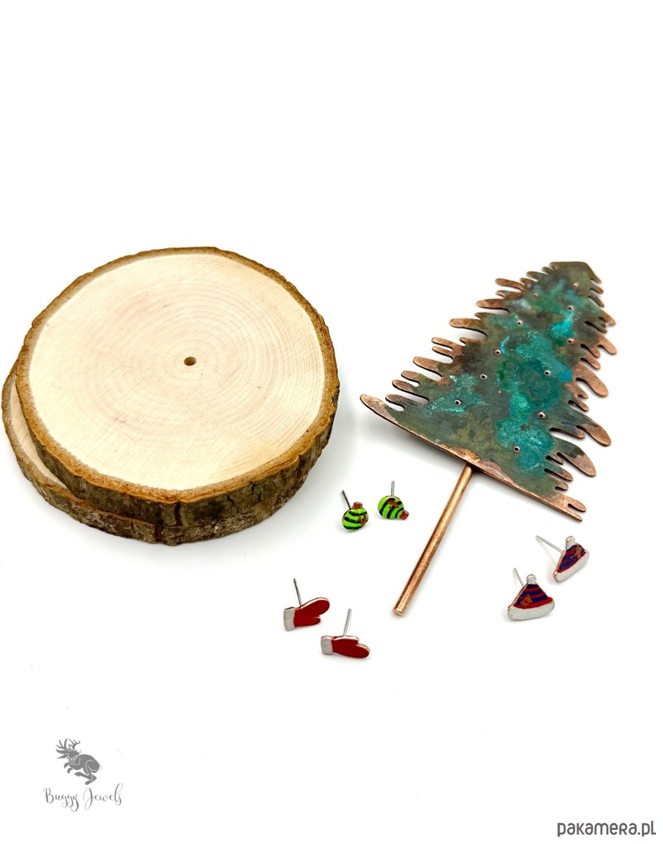 Podsumowując : w zestawie znajdują się 3 pary kolczyków, miedziana choinka oraz drewniany podstawek.