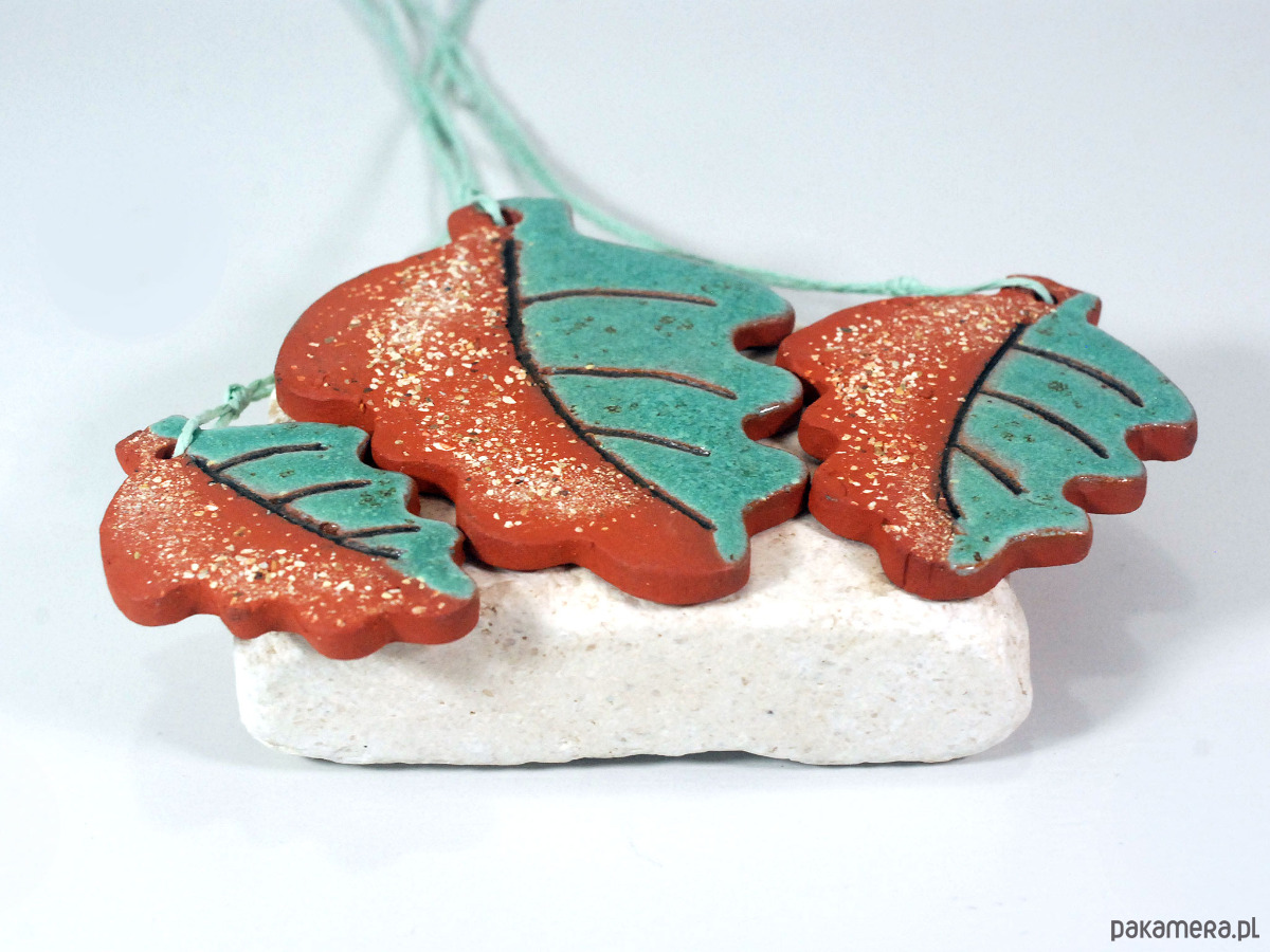 Zestaw zawiera 3 ręcznie robione i malowane ceramiczne liście.