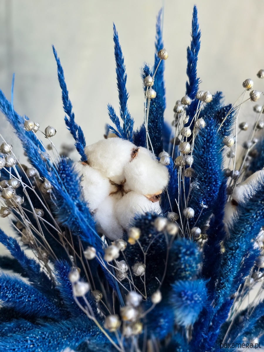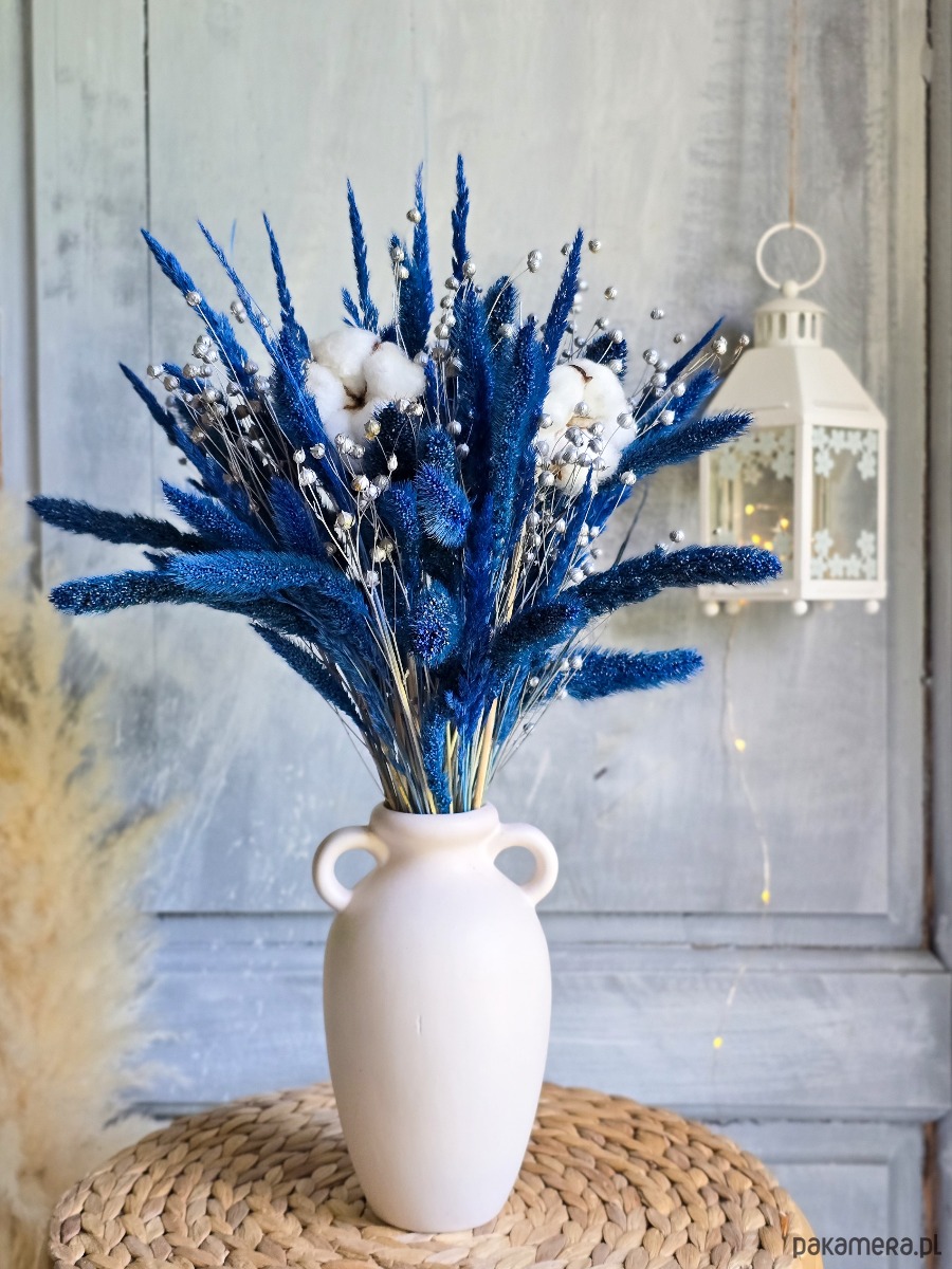 ❄️ Zimowy bukiet suszonych kwiatów w odcieniach granatu, bieli i srebra