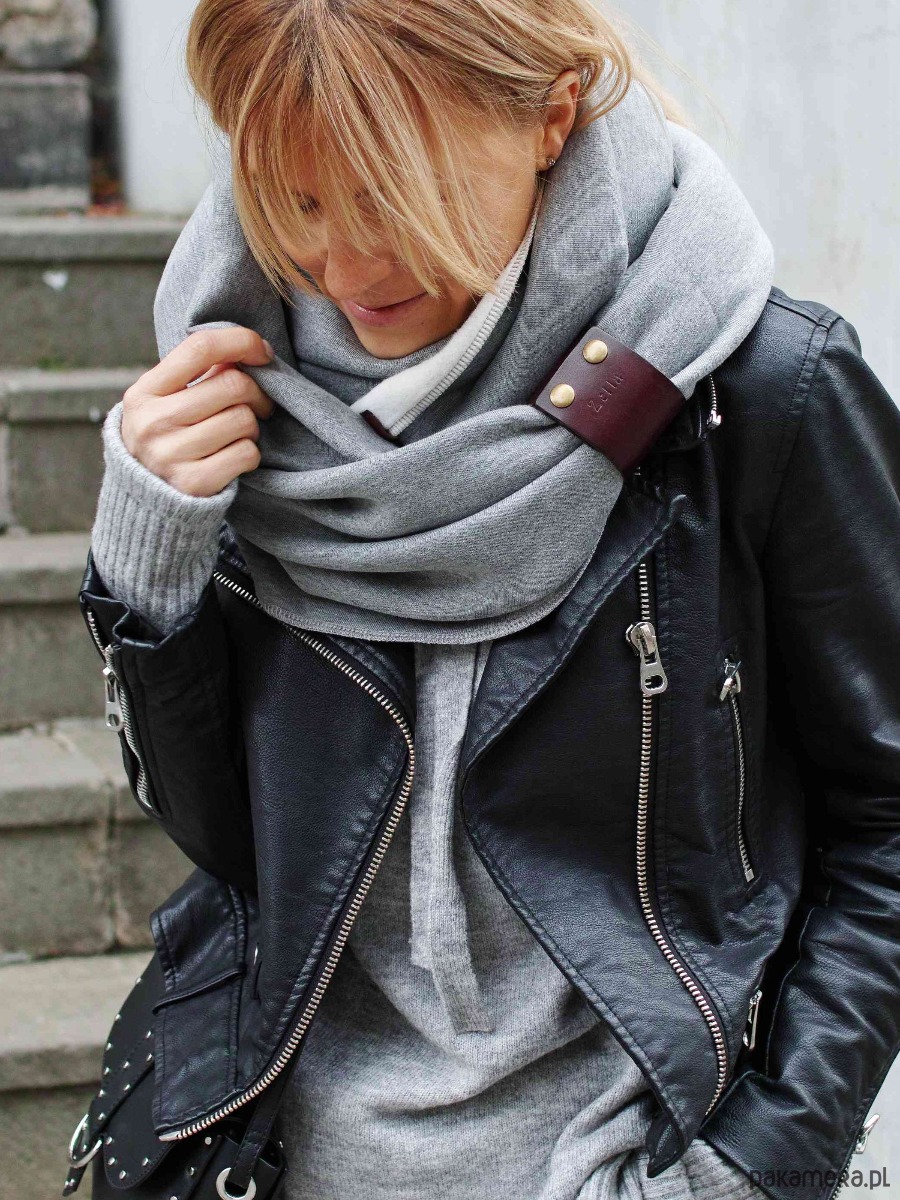 Zimowy komin damski, duży komin dresowy z zapinką skórzaną