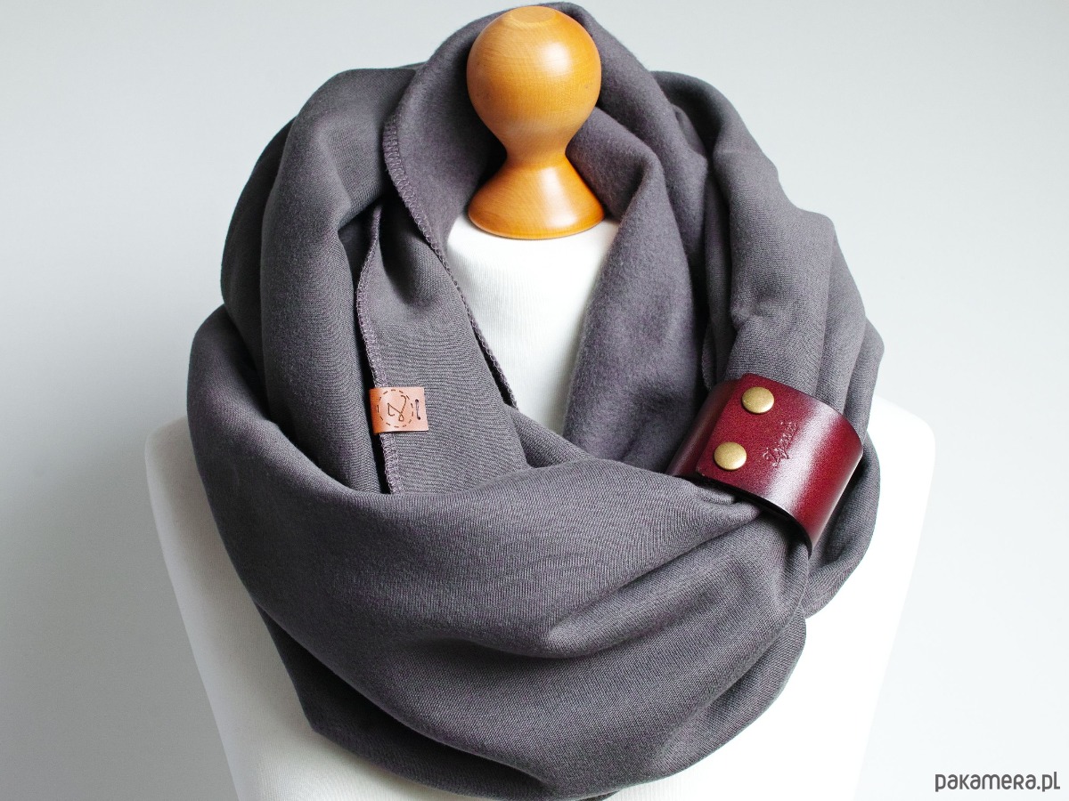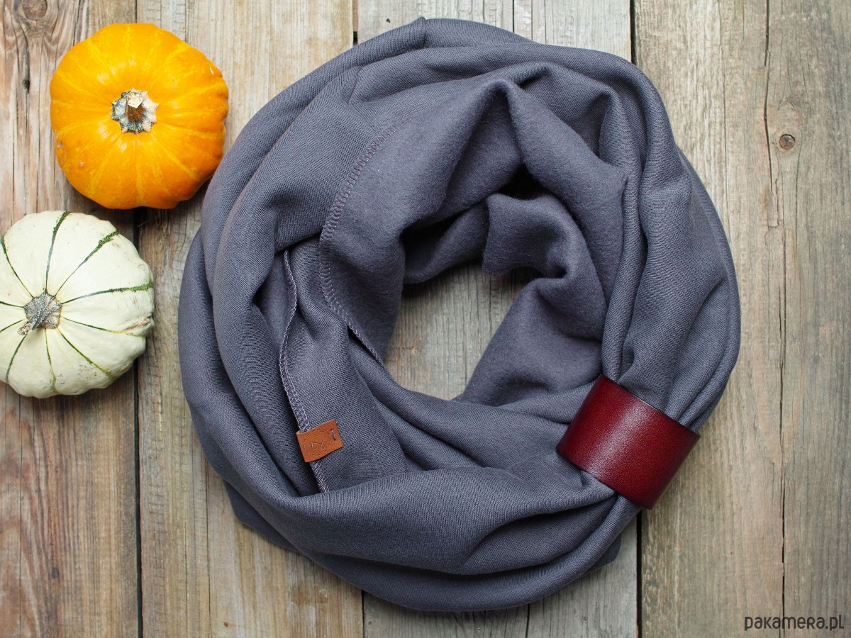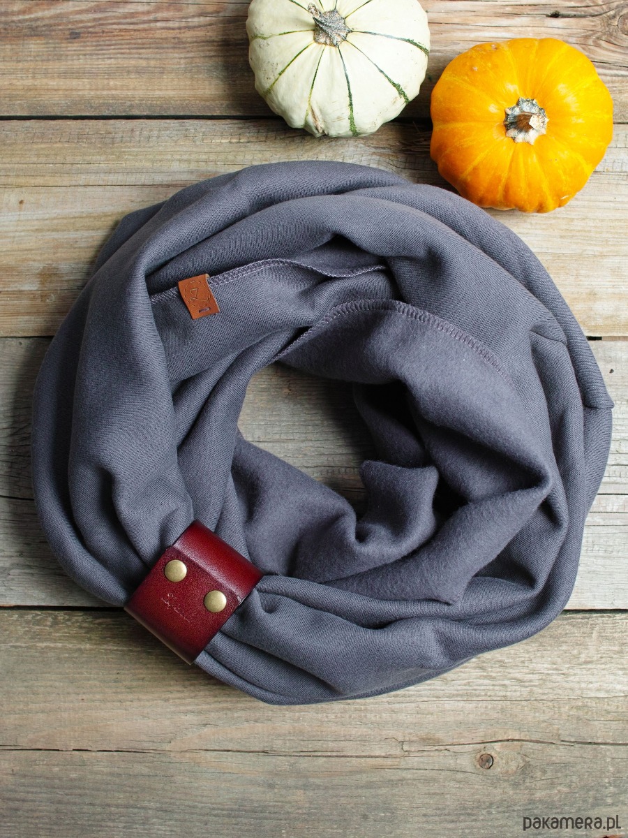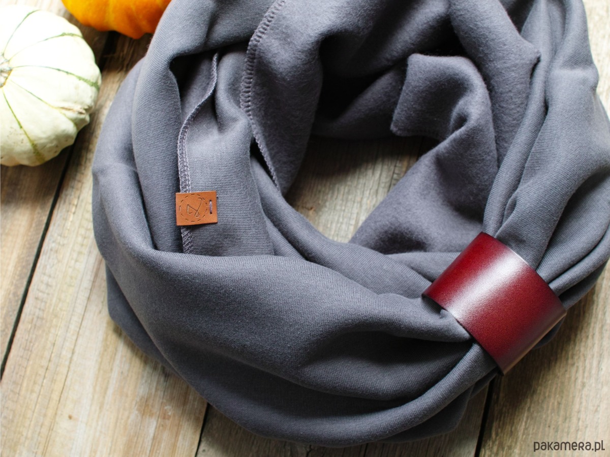 Ciepły komin dresowy damski – GRAFITOWY z zapinką skórzaną