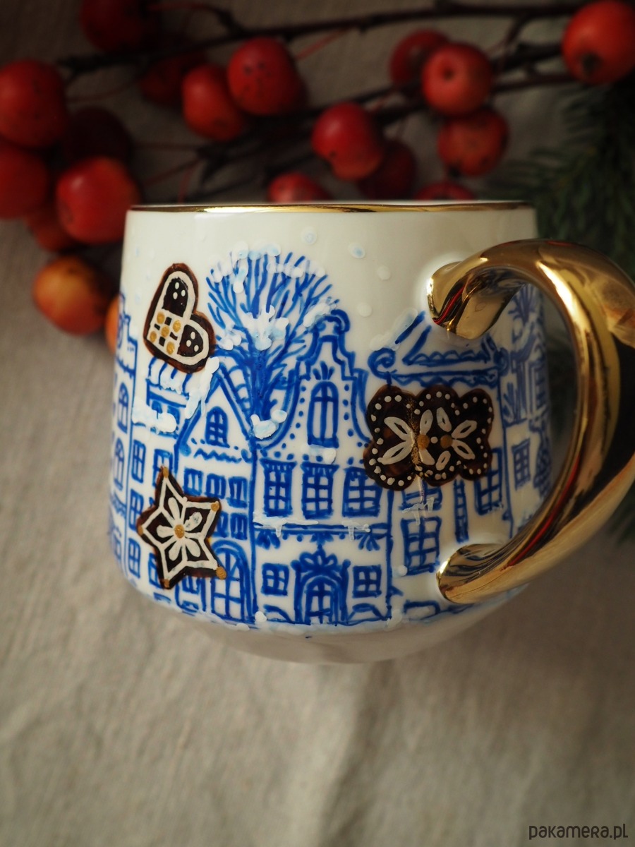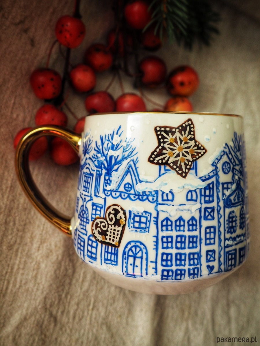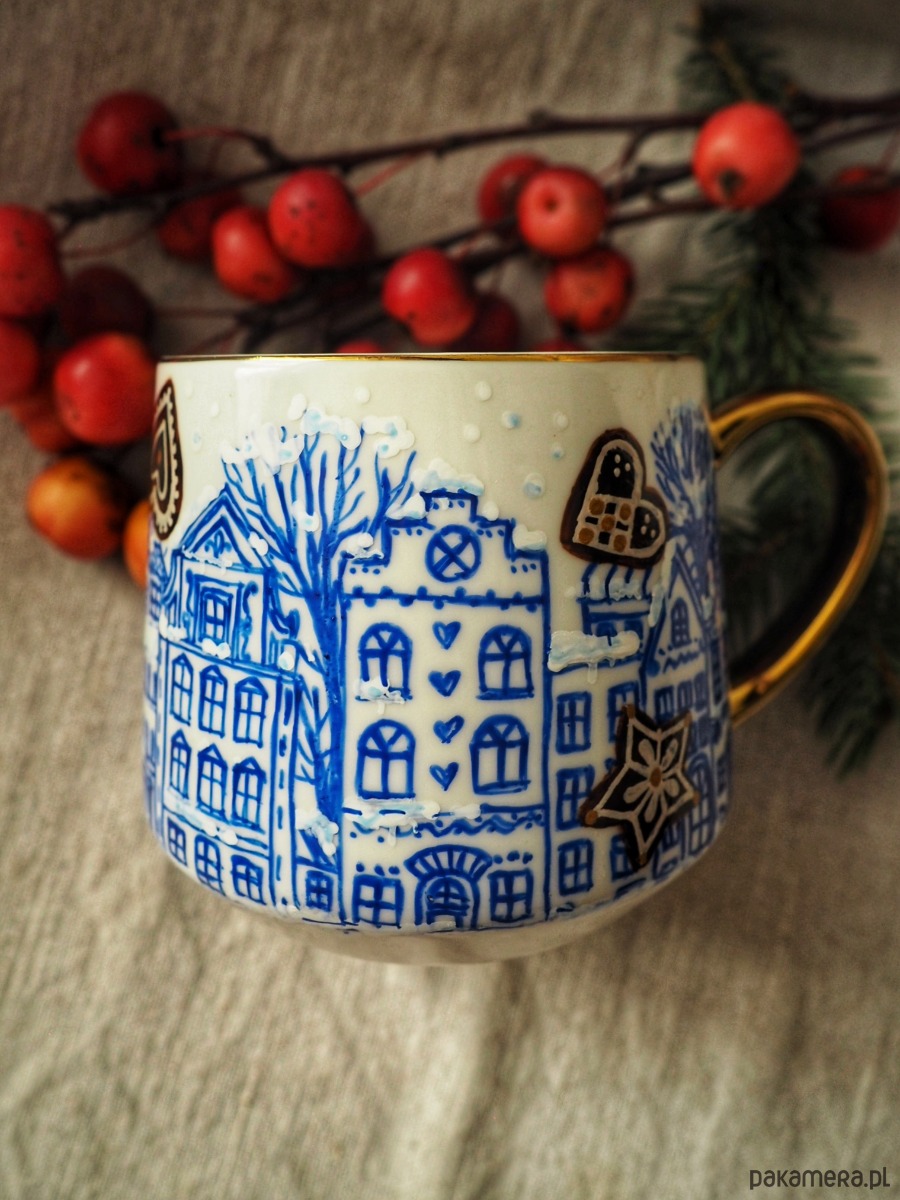 Ręcznie malowany kubek w stonowanych kolorach będzie doskonałym podarunkiem dla osoby kochającej zimowy nastrój.