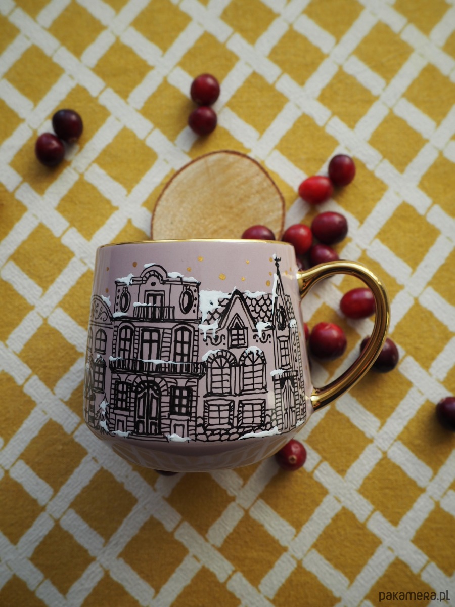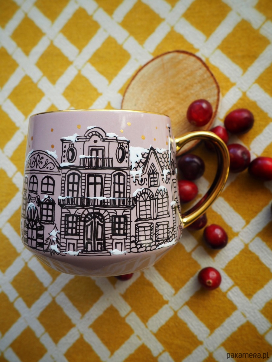 Ręcznie malowany kubek w stonowanych kolorach będzie doskonałym podarunkiem dla osoby kochającej zimowy nastrój.