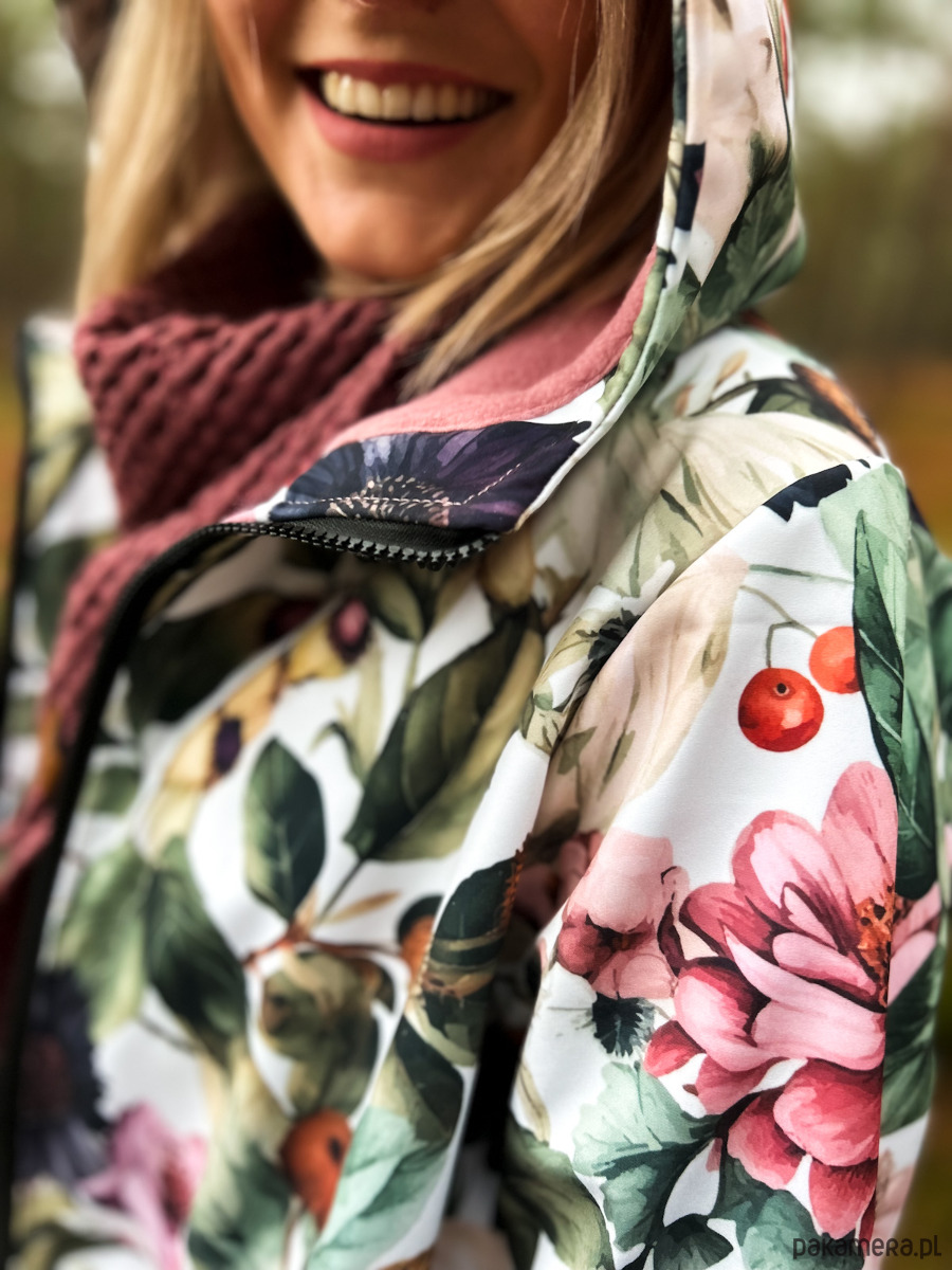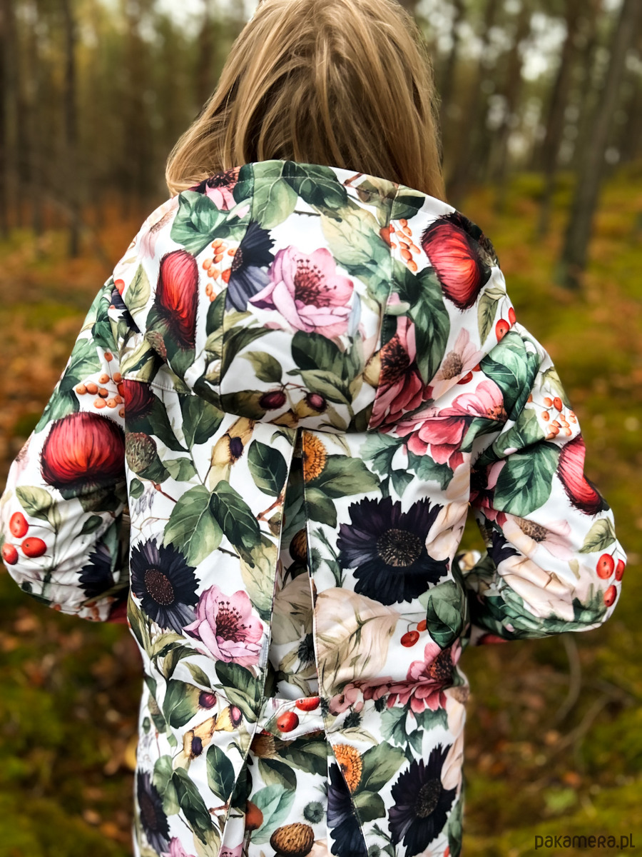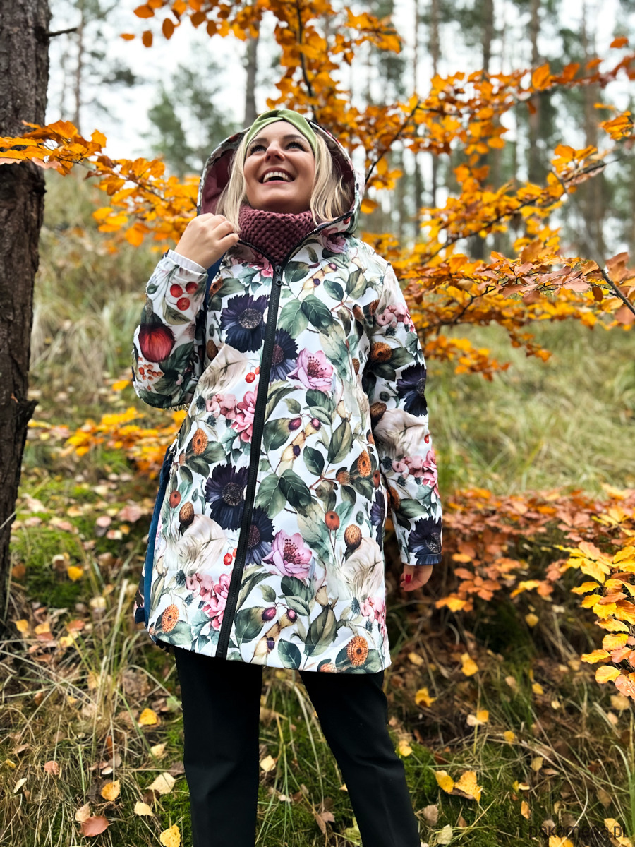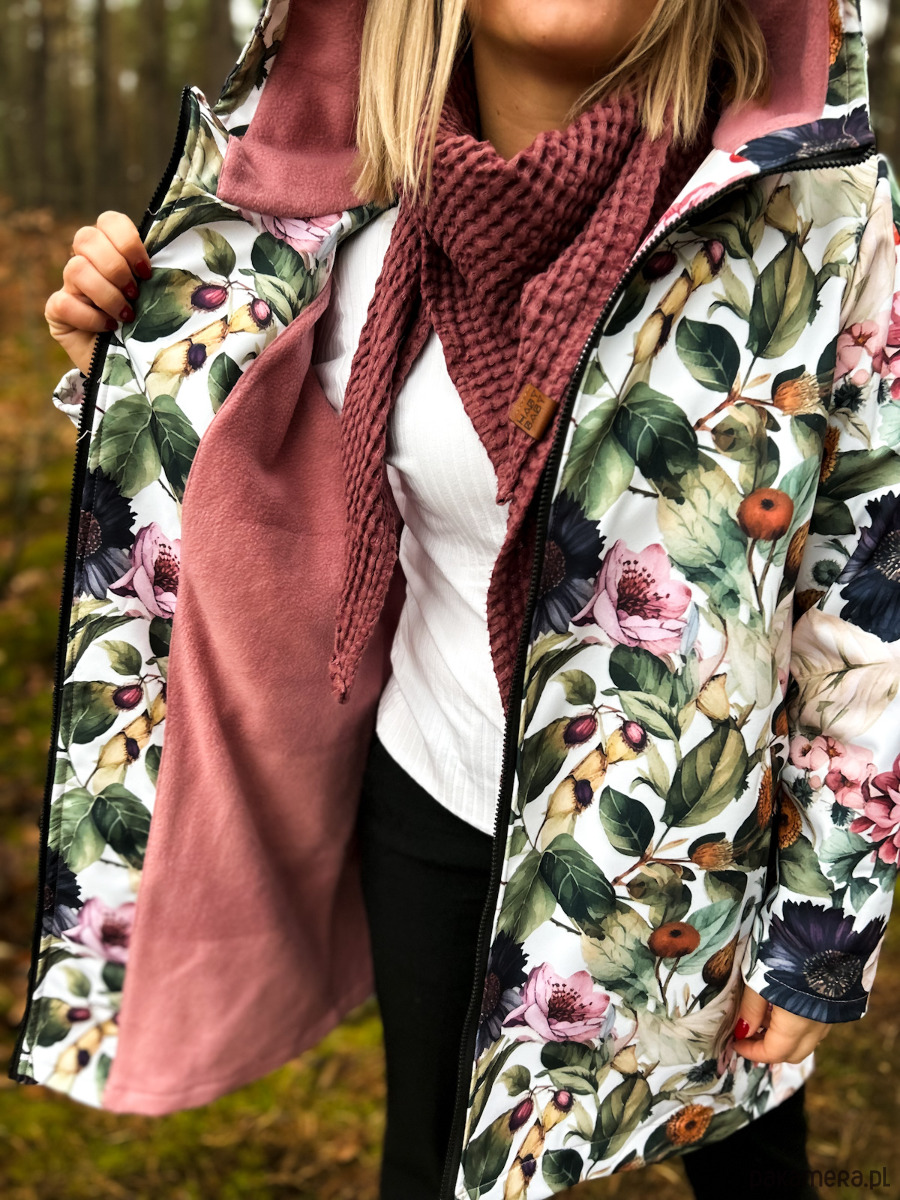 Zimowa kurtka damska typu płaszczyk, ocieplana. Wyróżnij się zimą! Czas na wzorzysty płaszczyk kwiaty vintage!