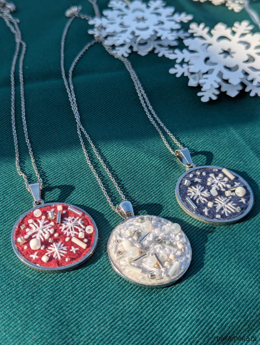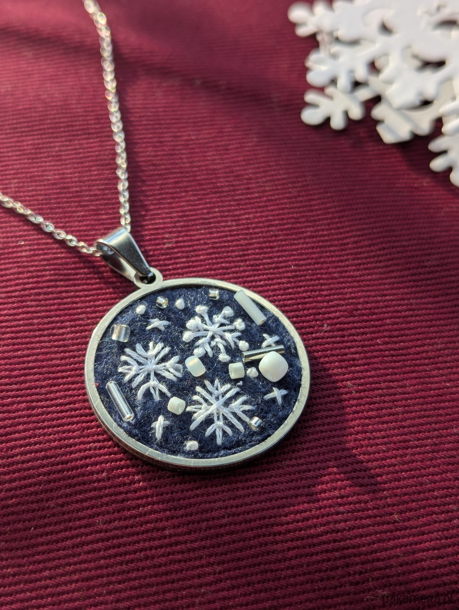 Zimowy ręcznie haftowany naszyjnik Śnieżynki