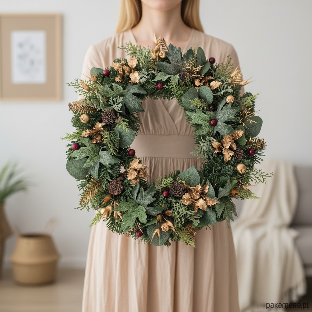 Zimowy wianek na drzwi