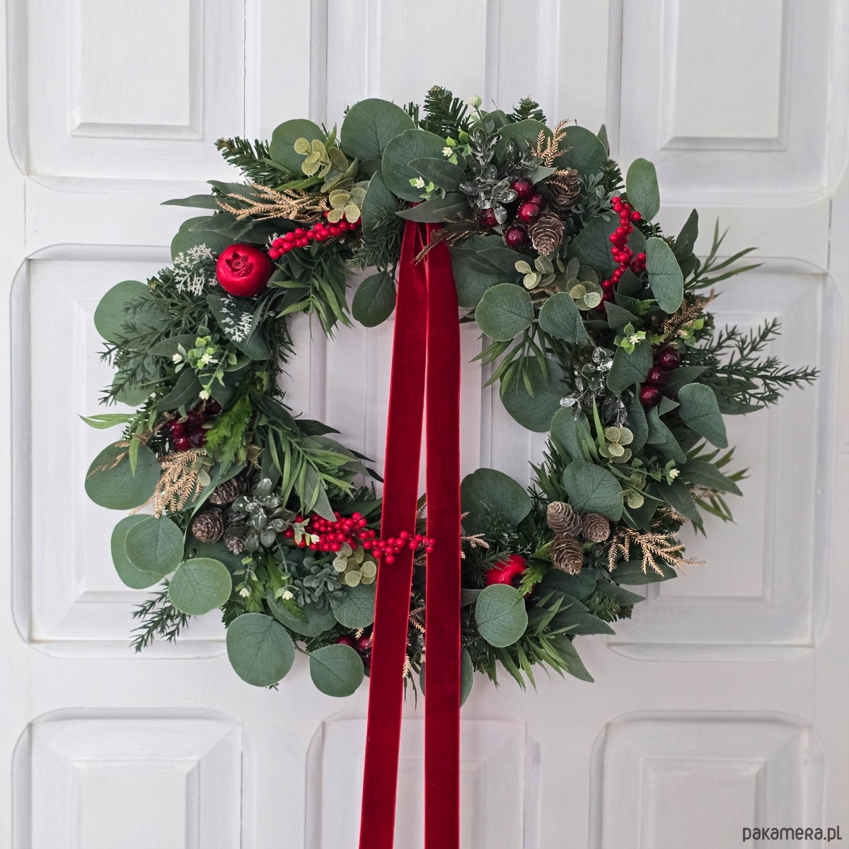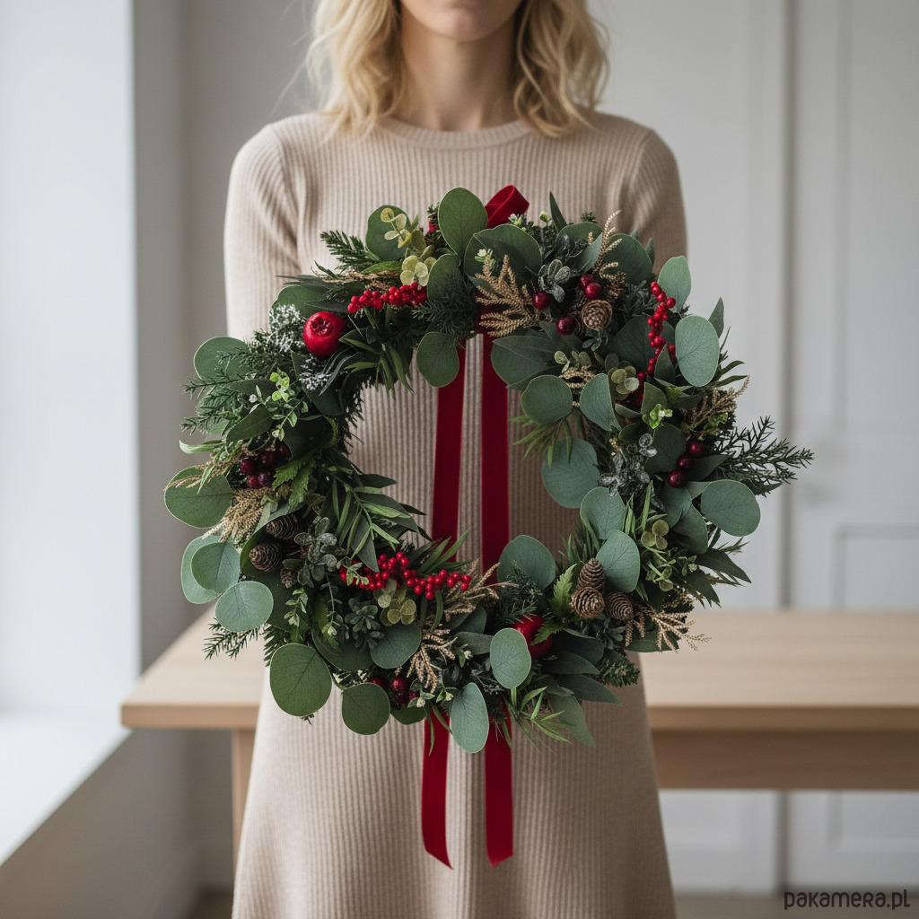 Zimowy wianek na drzwi