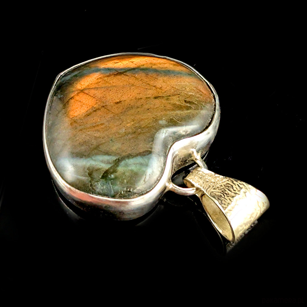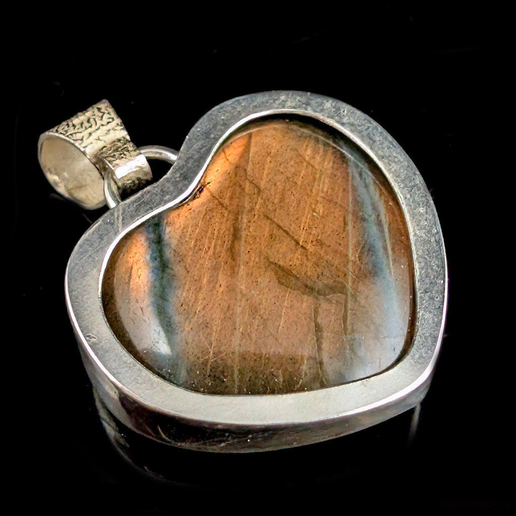 Romantyczny wisior z oprawionym w srebro próby 925 naturalnym labradorytem o kształcie pięknego serca. Klasyczna rama i charakterystyczne inkluzje podkreślają urodę kamienia. Wymiary całej oprawy 27 x 30 mm, długość max 40 mm, waga 17,5 g. Wisiorek zostanie zapakowany w ozdobne pudełeczko.