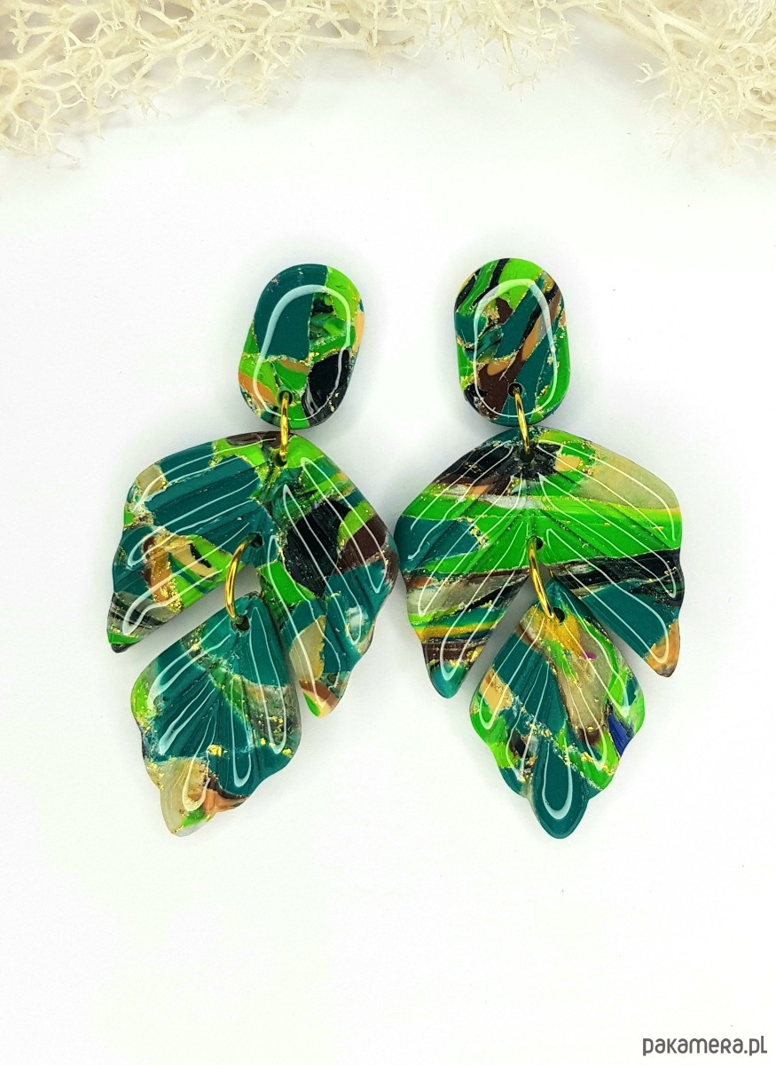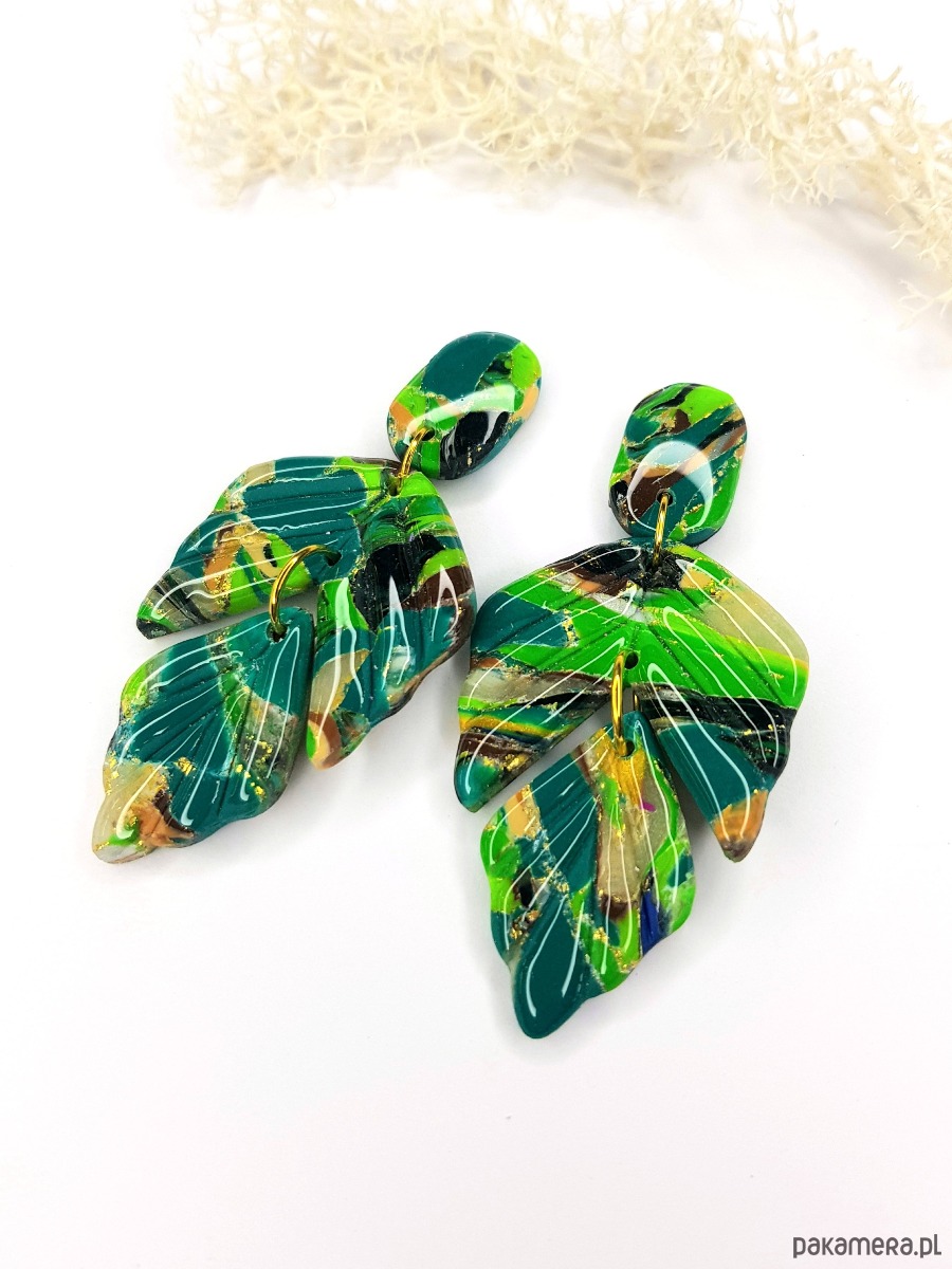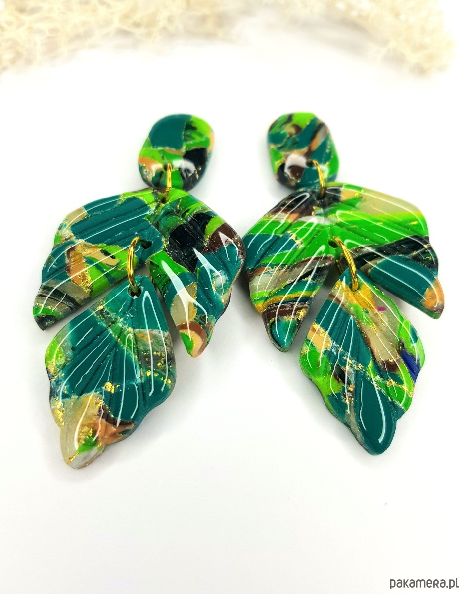 Wypiekane w piecu przewieszki wykonane zostały z profesjonalnej gliny polimerowej w różnych odcieniach zieleni.