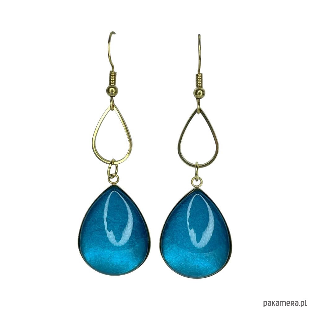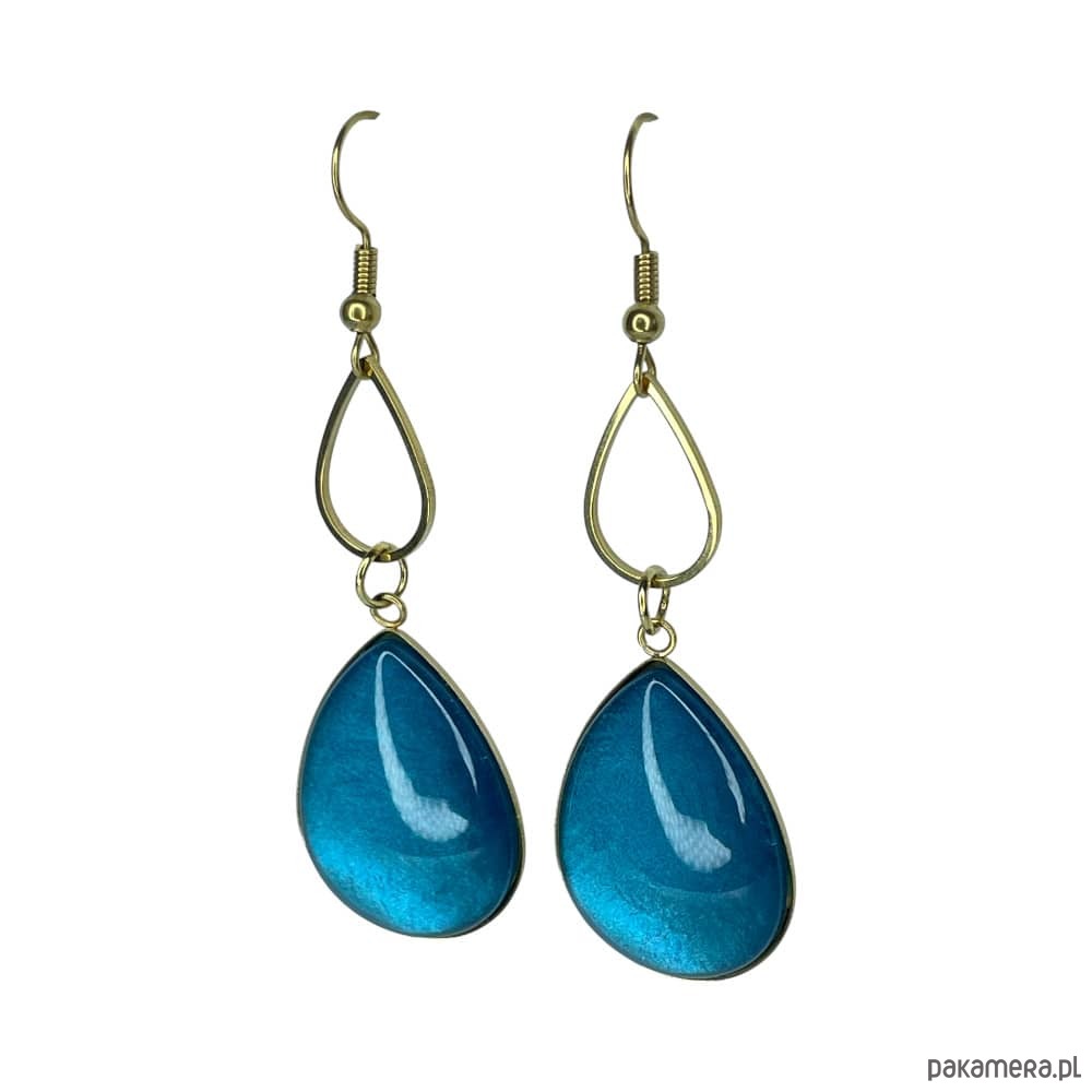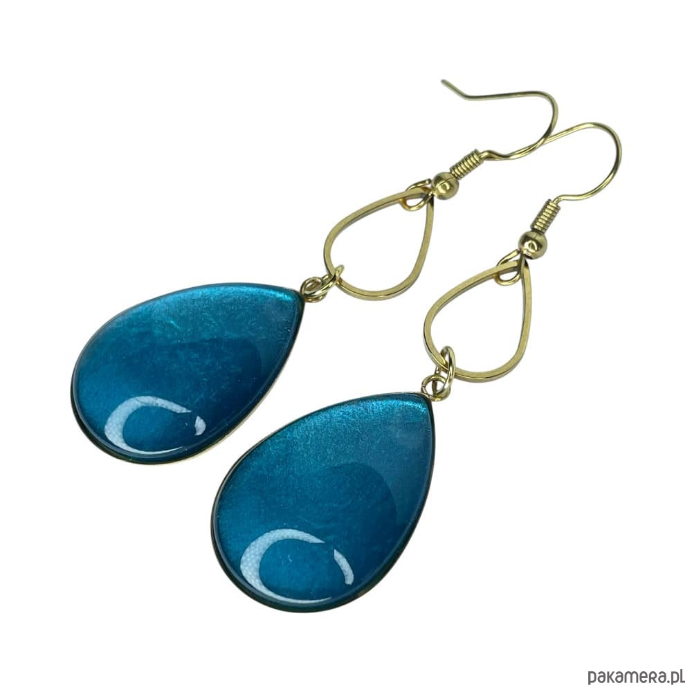 Złocone kolczyki w perłowym odcieniu turkusu