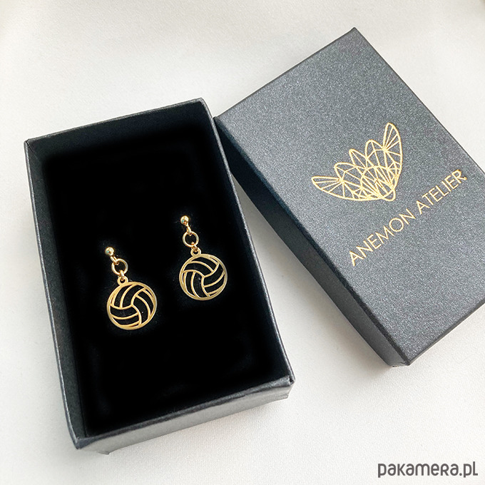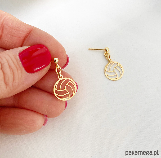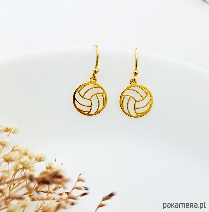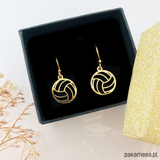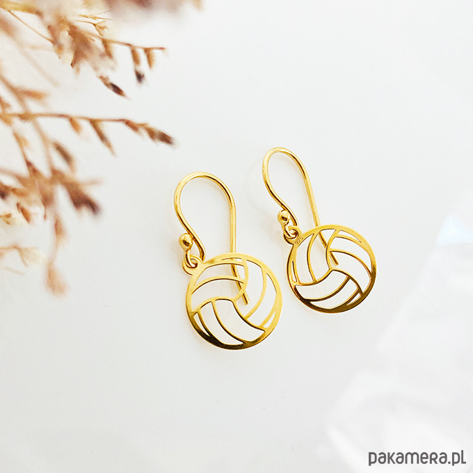 Kolczyki z zawieszkami w kształcie piłki , Idealny na wyjątkowy prezent dla wielbicielki siatkówki. Wykonane ze srebra próby 925 i złocone 24 k złotem.