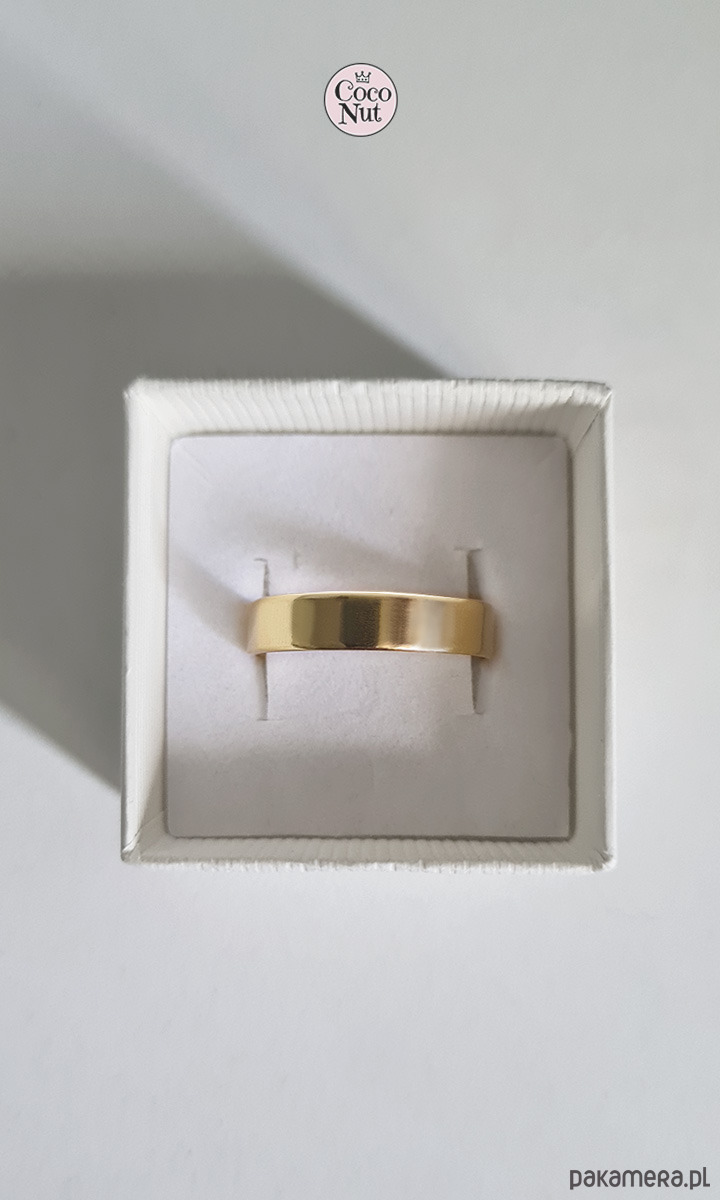 Obrączka wykonana ze srebra o szerokości ok. 5 mm.