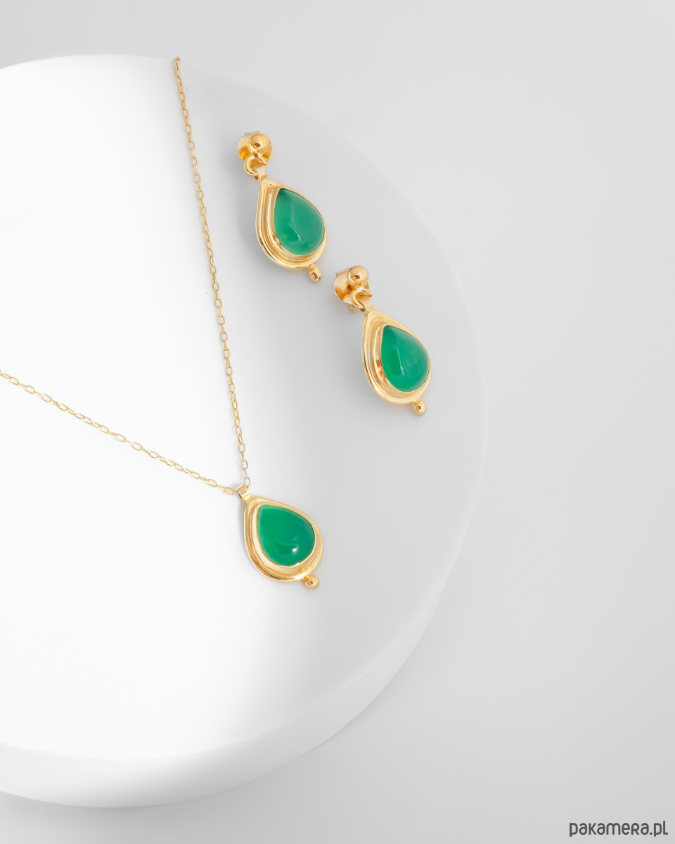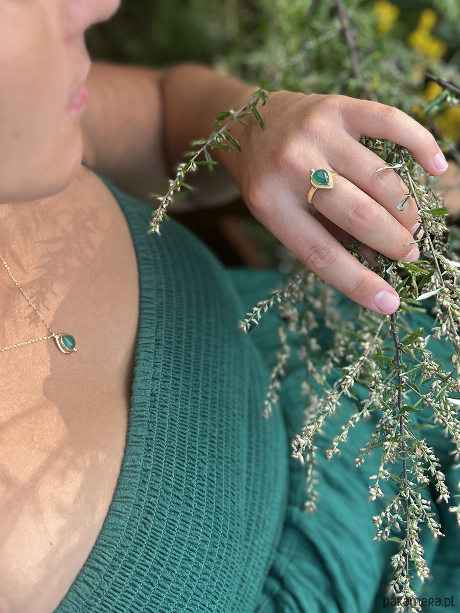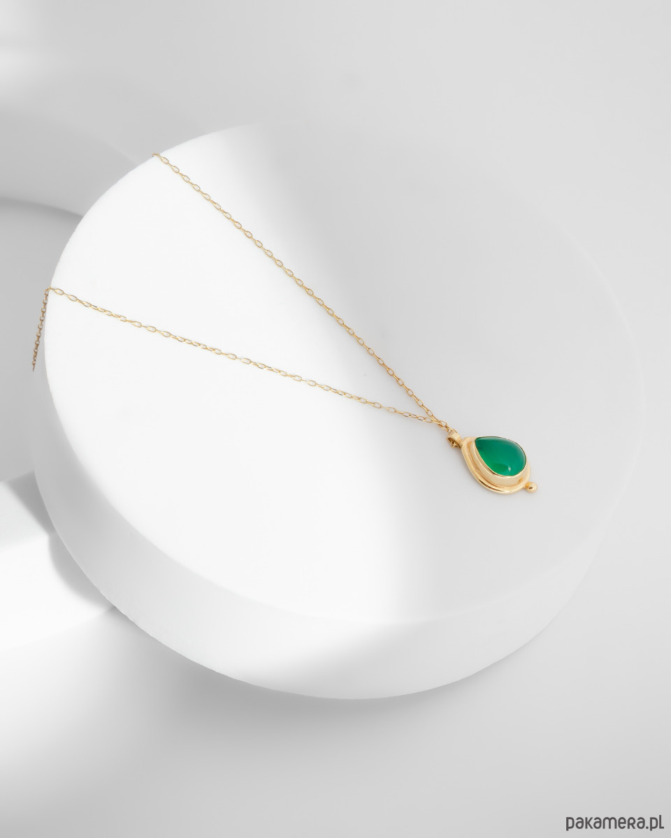 Naszyjnik ze złoconego srebra 925 z zielonym agatem - kamieniem równowagi emocjonalnej