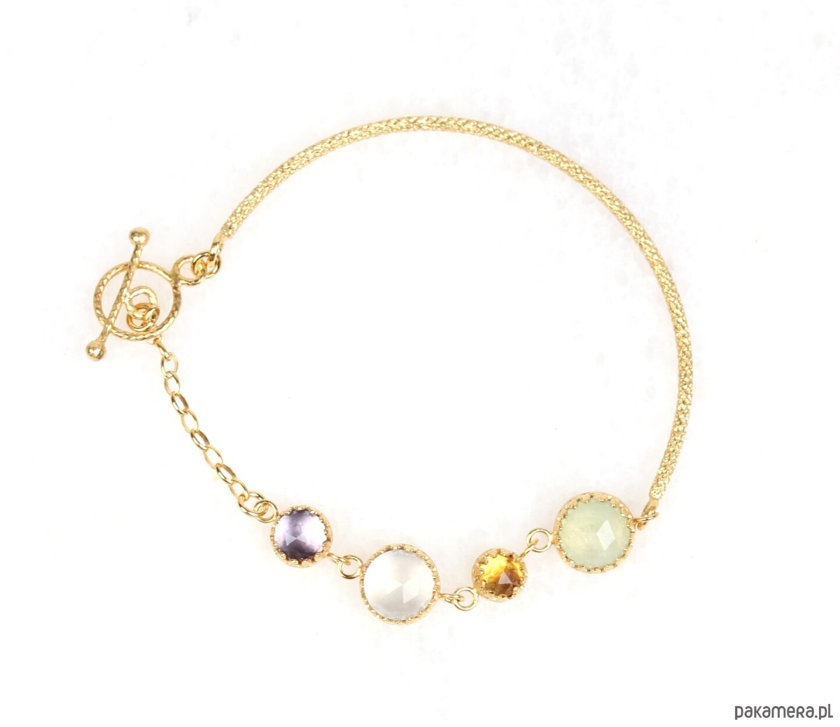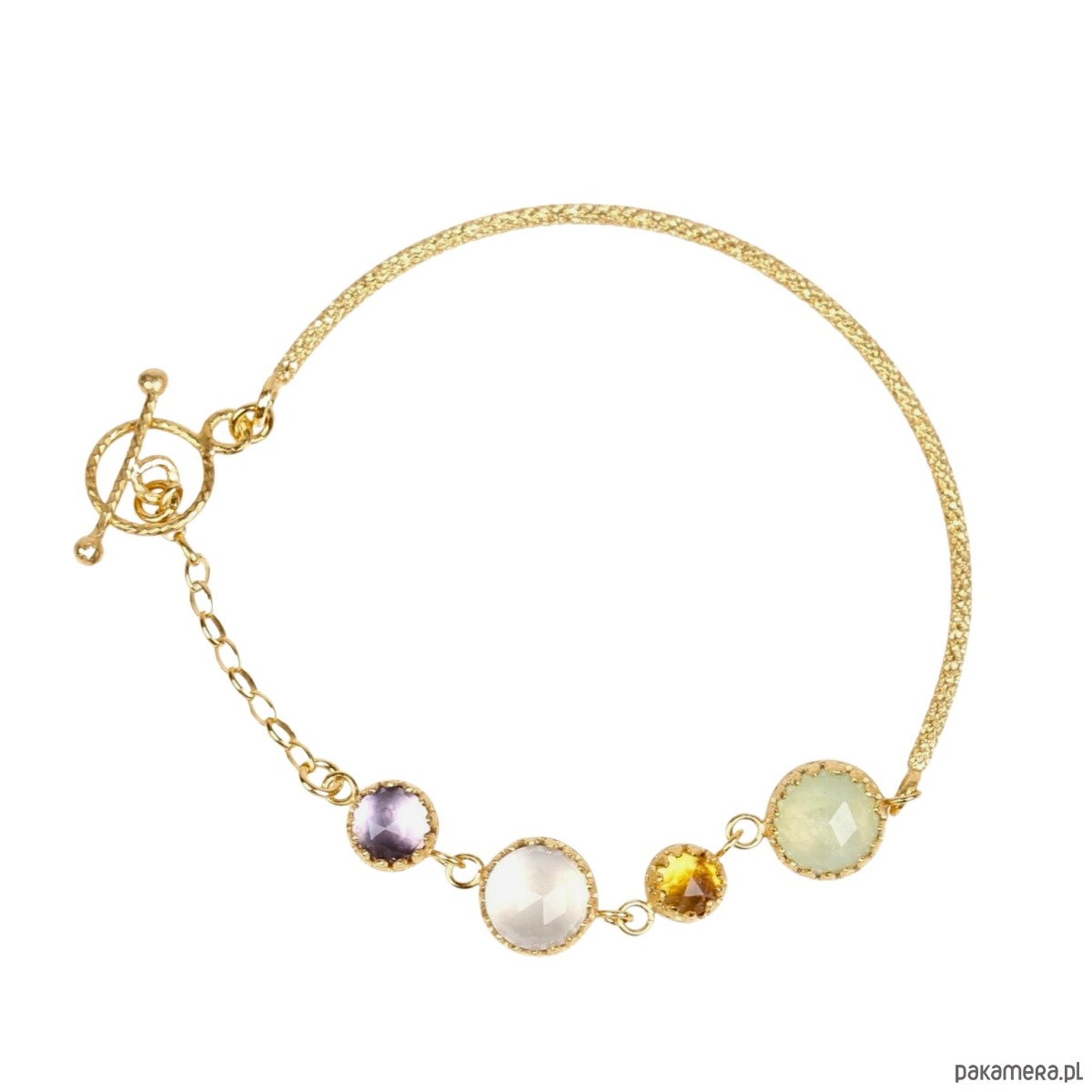 Złota bransoletka Dream z ametystem i prehnitem, cytrynem i kwarcem różowym