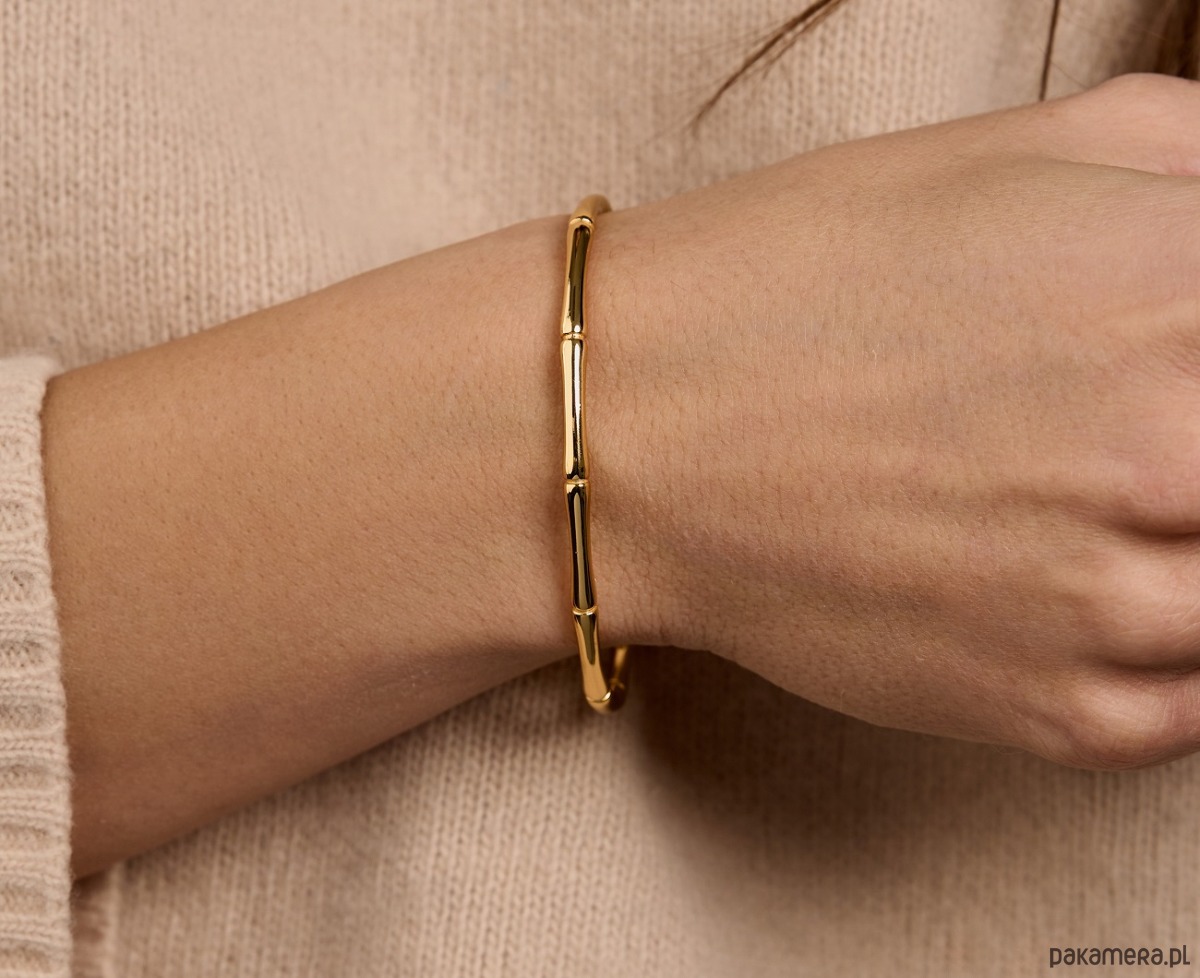 Złota bransoletka obręcz "Bamboo" - srebro 925 pozłacane