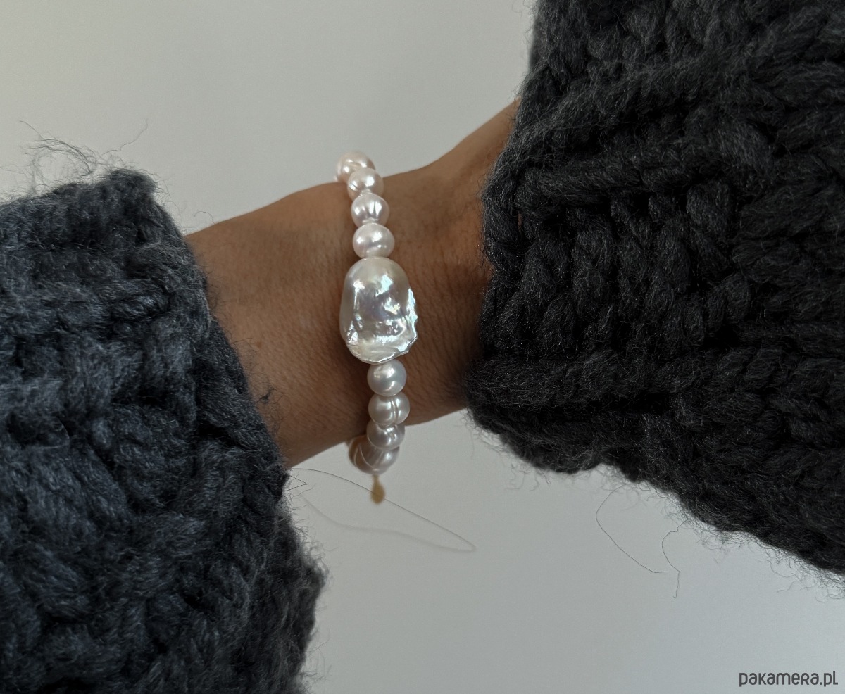 Złota bransoletka z pereł naturalnych z barokową perłą