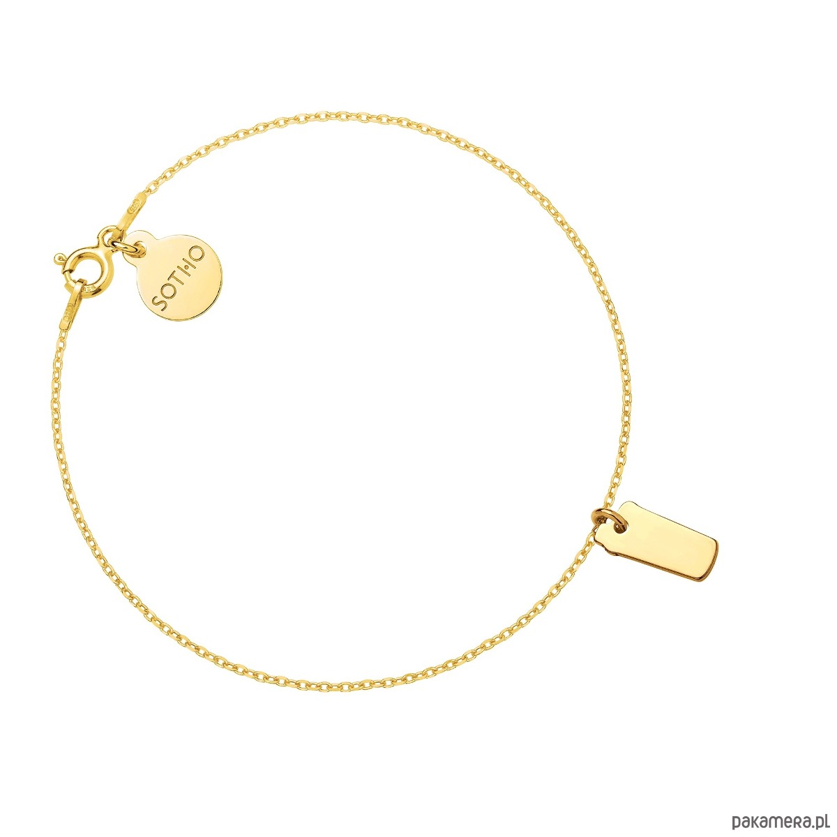 Złota bransoletka łańcuszkowa zdobiona shakerem i zawieszką z logo marki. Całość wykonana ze srebra 925 powlekanego 24 karatowym żółtym złotem.