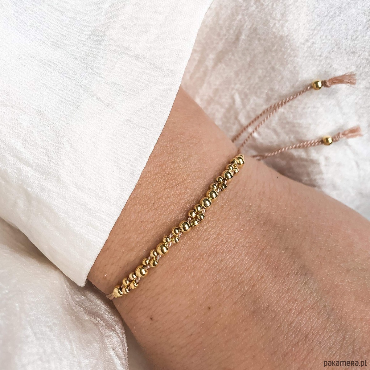 Bransoletka Full Bubble na beżowej nici z kuleczkami Goldfilled