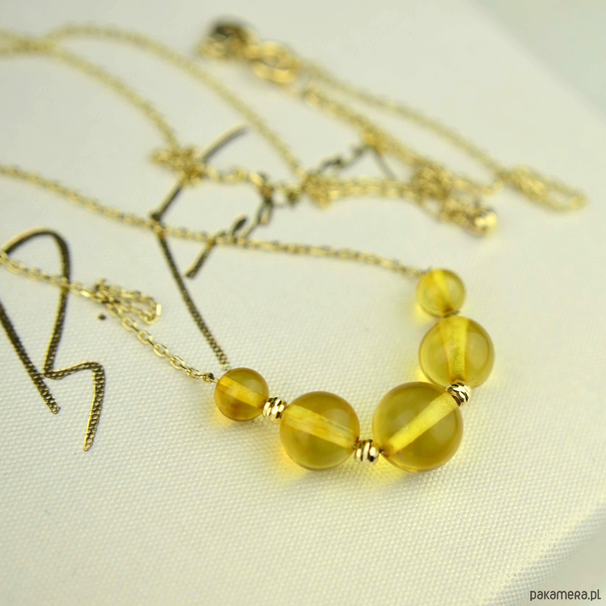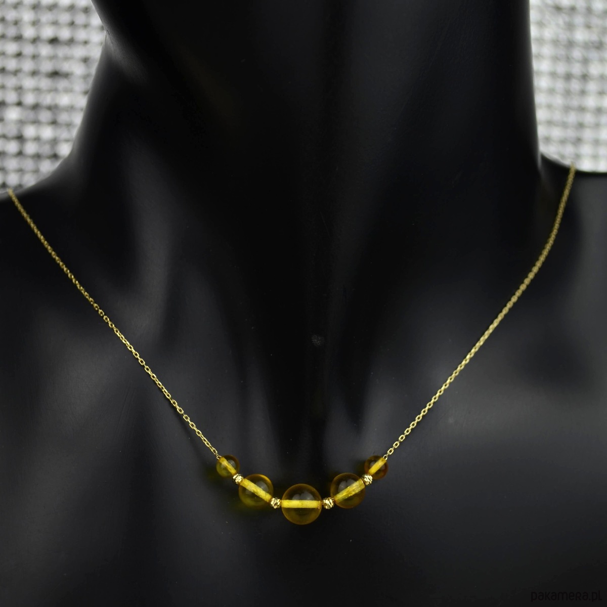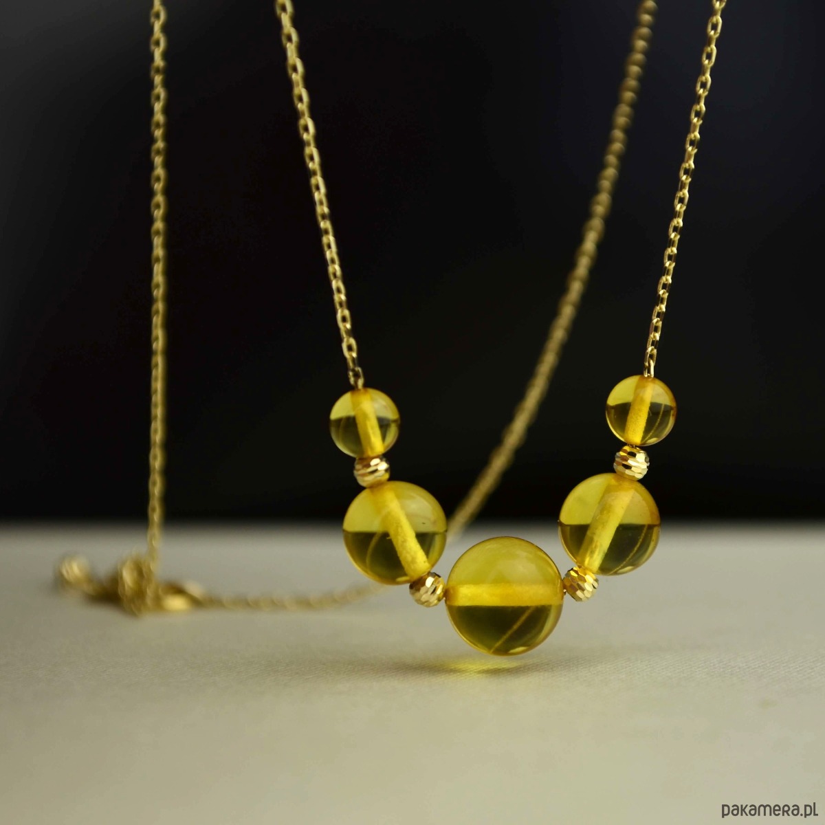 Złota kolia ze słonecznym bursztynem pr. 585
