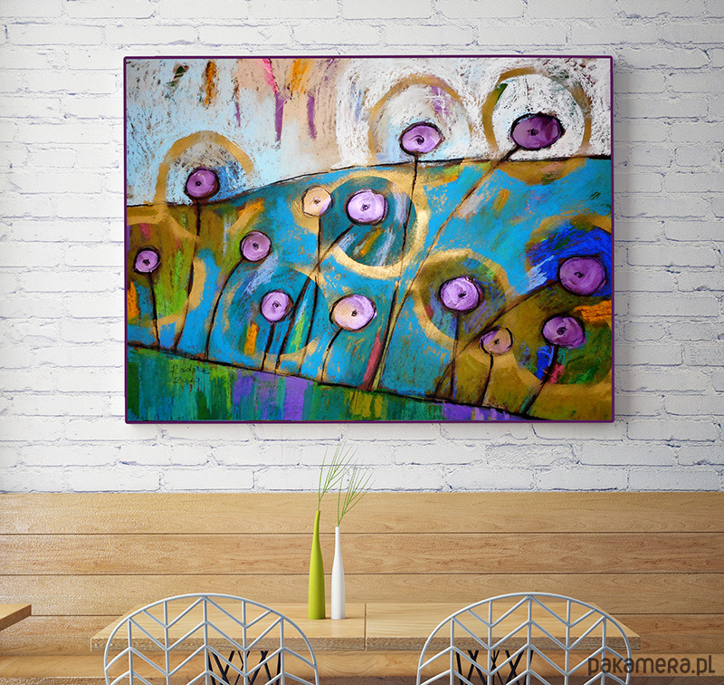 Plakat formatu B2 (70 x 50 cm) na podstawie autorskiego rysunku pastelami suchymi, węglem i akrylami. Papier satynowany półmatowy, gramatura 200 g/m2.