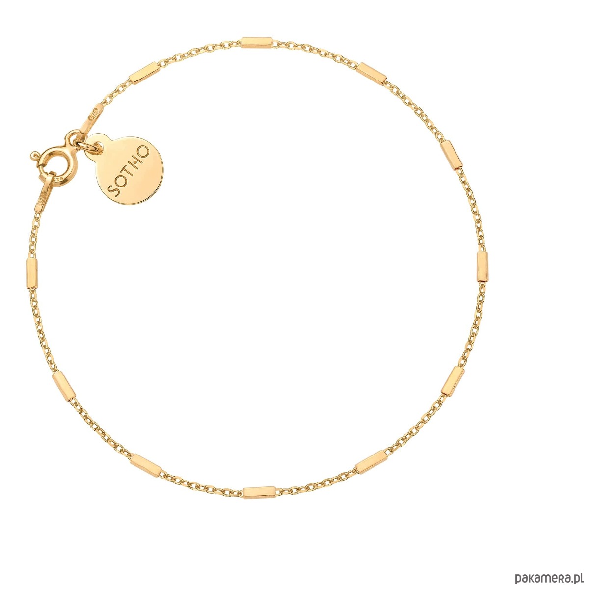 Złota bransoletka łańcuszkowa z logo marki. Całość wykonana ze srebra 925 powlekanego 24 karatowym żółtym złotem.