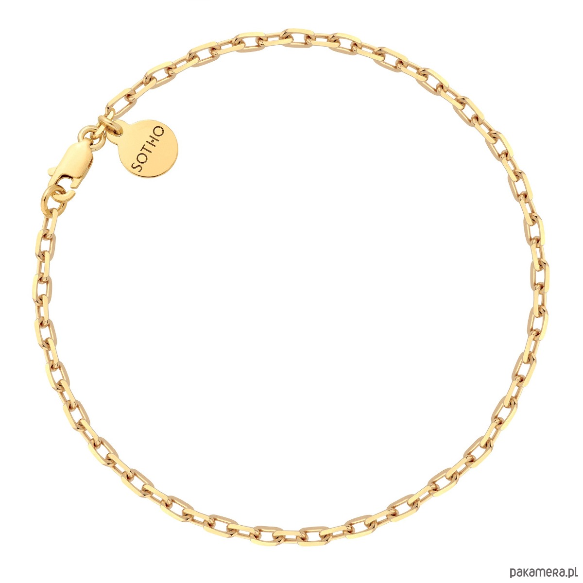 Złota masywna łańcuszkowa bransoletka na nogę z zawieszką z logo marki.