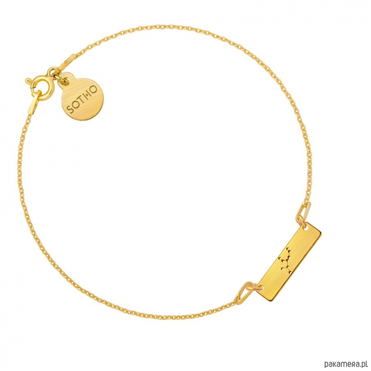 Złota matowa bransoletka łańcuszkowa zdobiona konstelacją zodiakalną Panny i zawieszką z logo marki. Całość wykonana ze srebra 925 powlekanego 24 karatowym żółtym złotem.