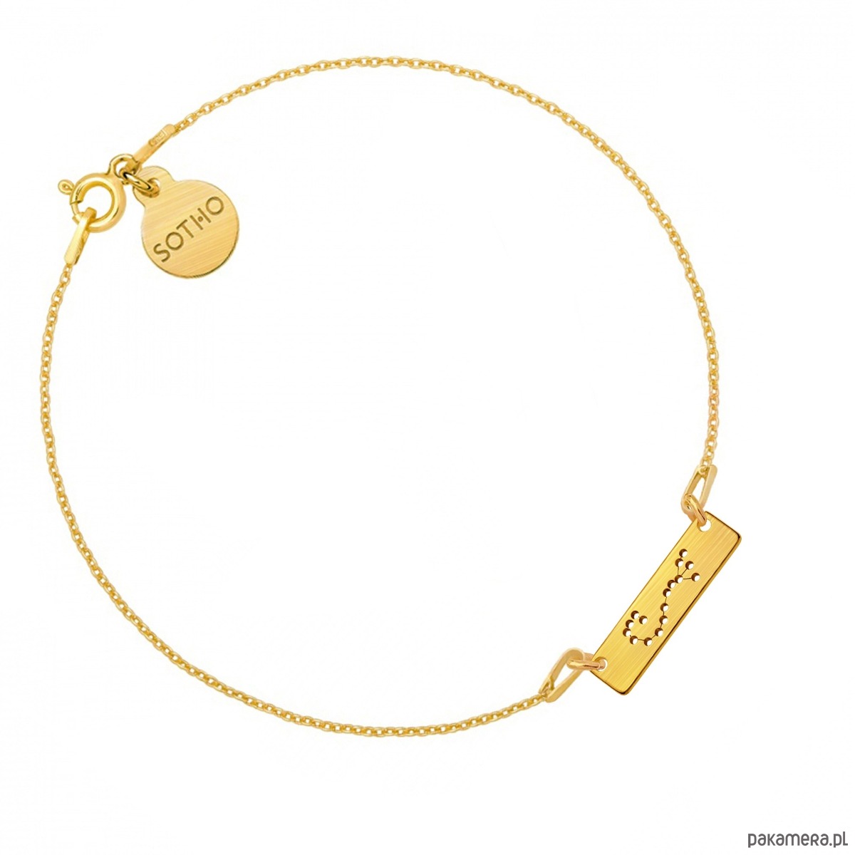 Złota matowa bransoletka łańcuszkowa zdobiona konstelacją zodiakalną Skorpiona i zawieszką z logo marki. Całość wykonana ze srebra 925 powlekanego 24 karatowym żółtym złotem.