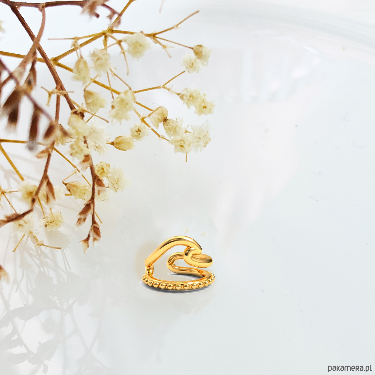 Piękna złocona nausznica w kształcie fali,emanuje lśniącym urokiem, który z pewnością przypadnie do gustu każdej kobiecie poszukującej odrobiny elegancji i minimalistycznego stylu, dodaje odrobinę piękna do Twojego outfitu.