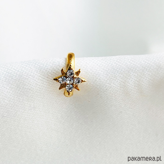 Piękna złocona nausznica z małą gwiazdką wysadzana cyrkoniami, kolczyk bez konieczności przekłuwania uszu. Można nosić na całej długości ucha. Delikatnie można dopasować wielkość kolczyka.