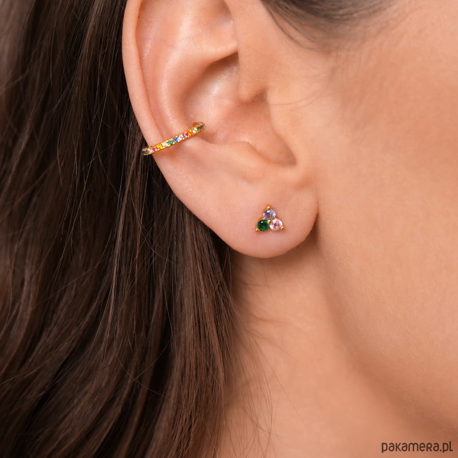Złota nausznica "Rainbow" ozdobiona cyrkoniami - srebro 925 pozłacane