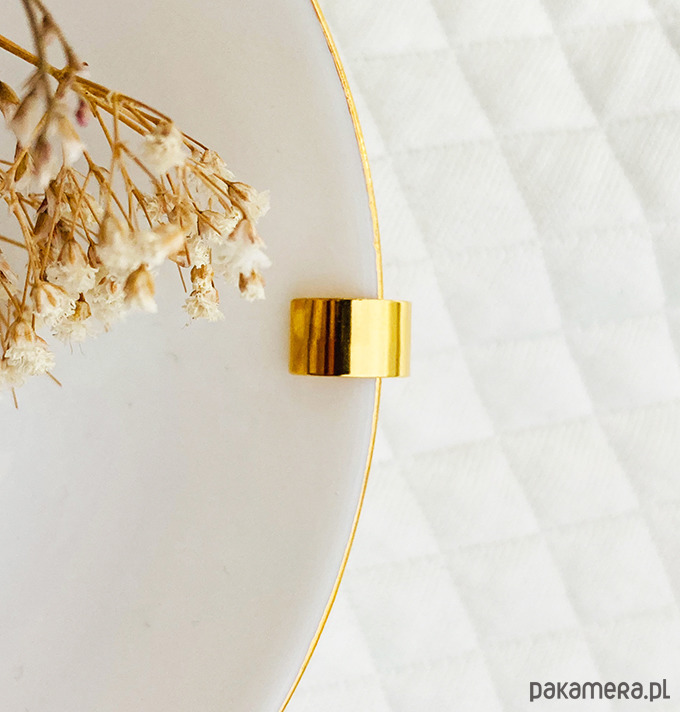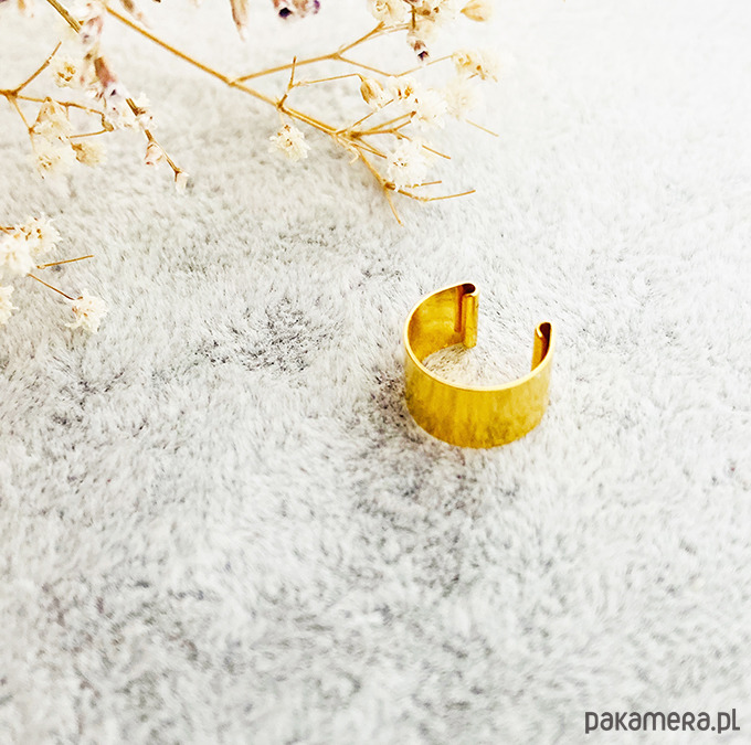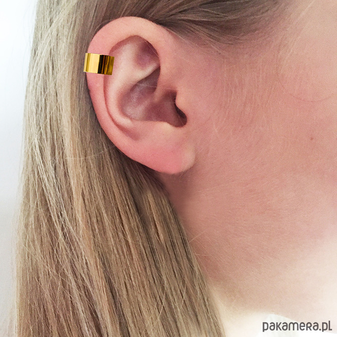 Złota nausznica, szeroki kolczyk srebro