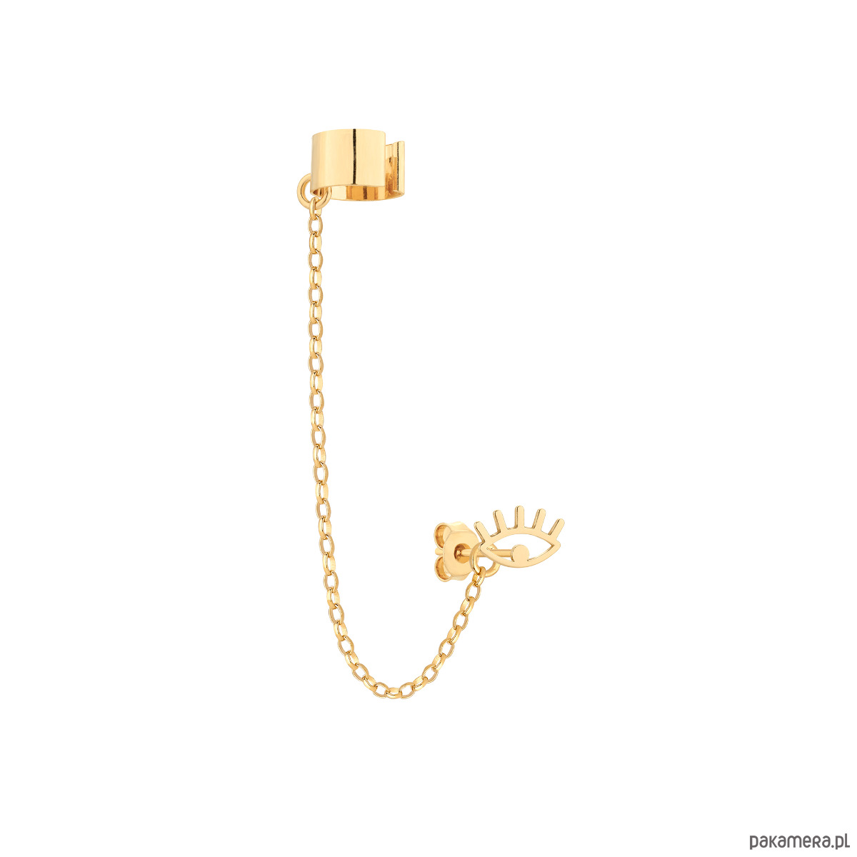 Złota nausznica z łańcuszkiem i okiem w całości wykonana ze srebra 925 powlekanego 24 karatowym żółtym złotem.