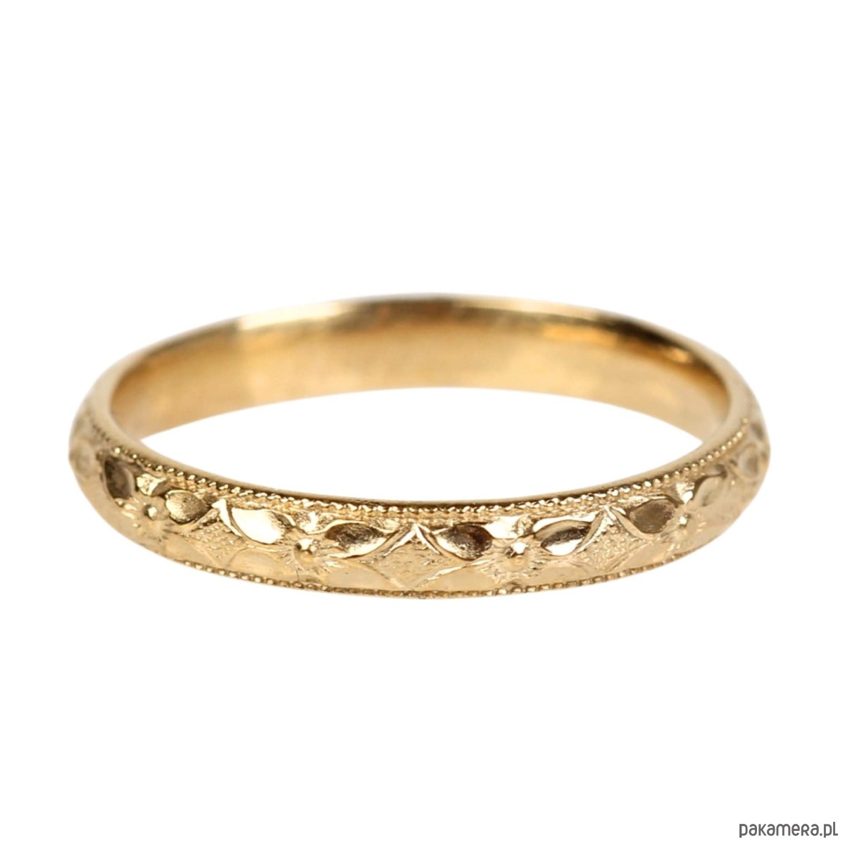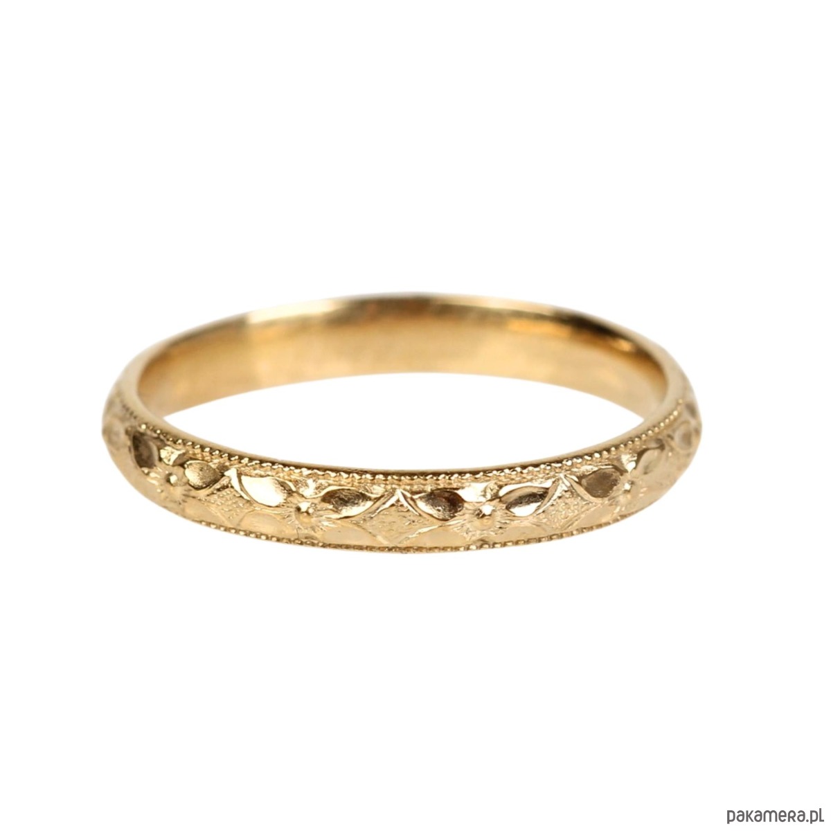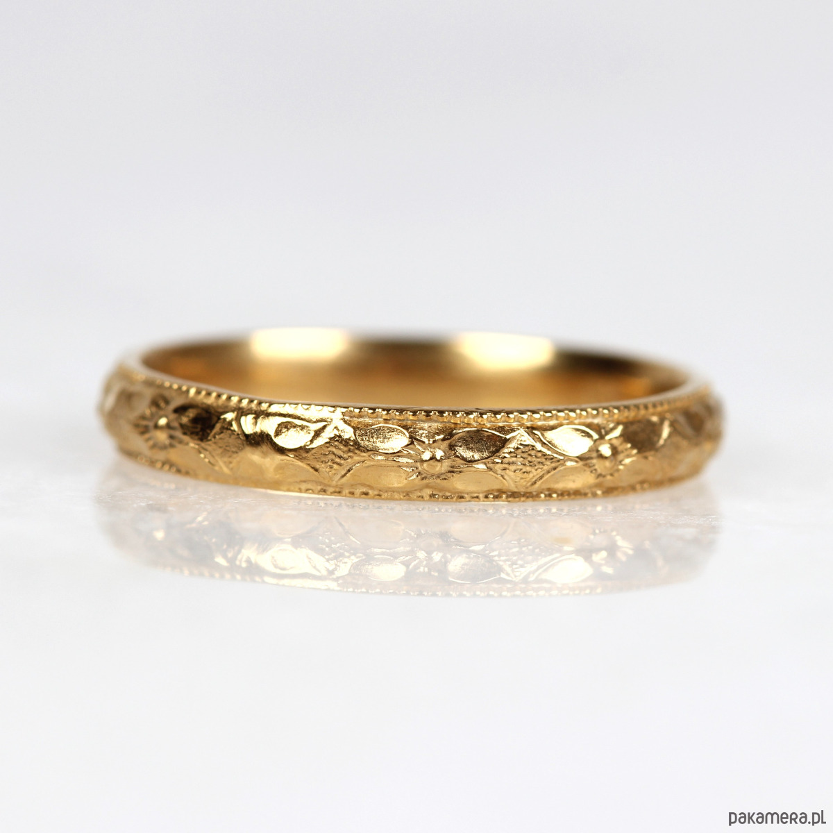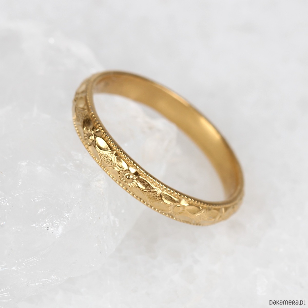 Złota obrączka z kwiatową fakturą - Peonia r.14