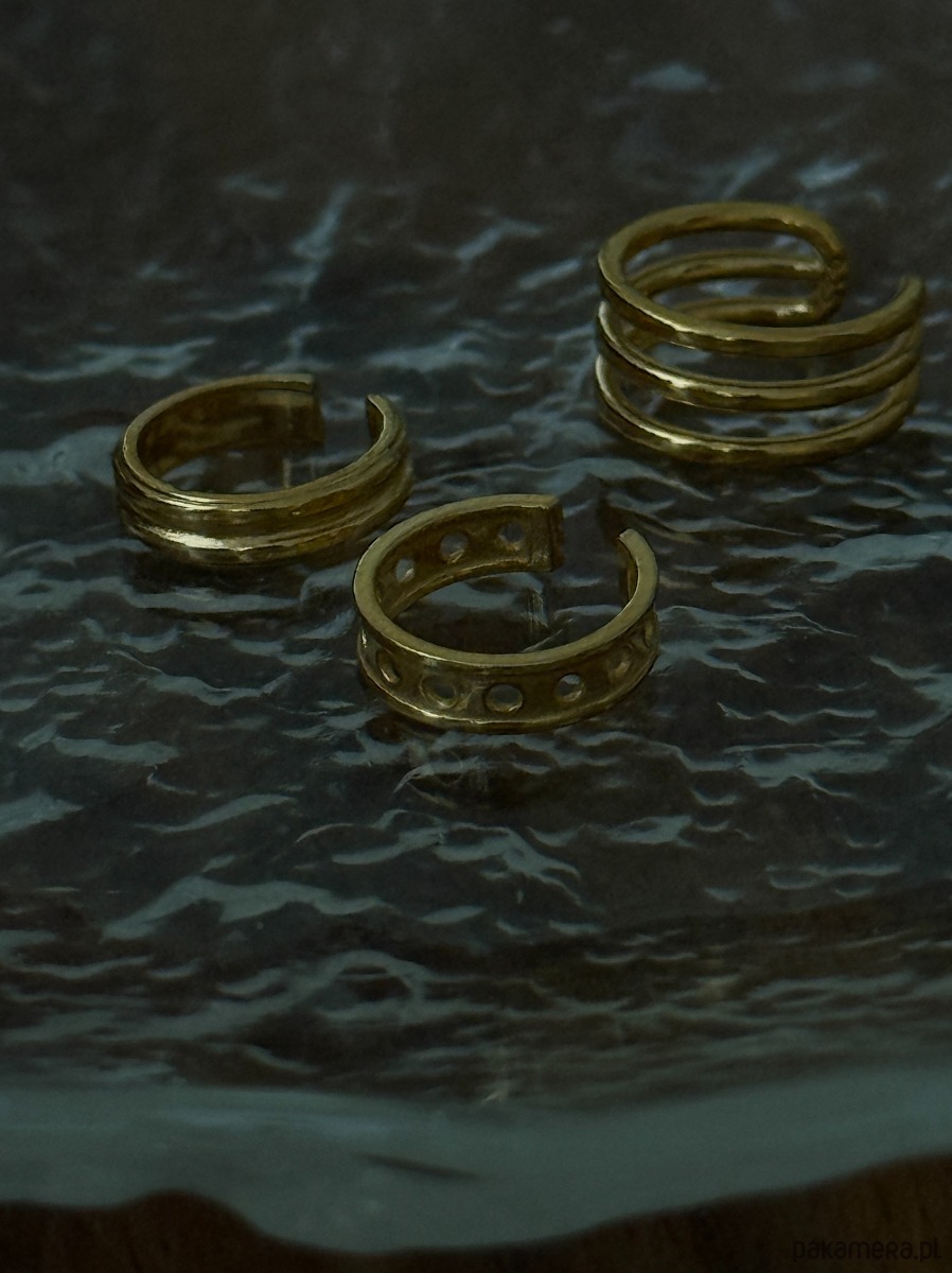 Złota ozdobna nausznica w całości wykonana ze srebra 925 powlekanego 24 karatowym żółtym złotem.