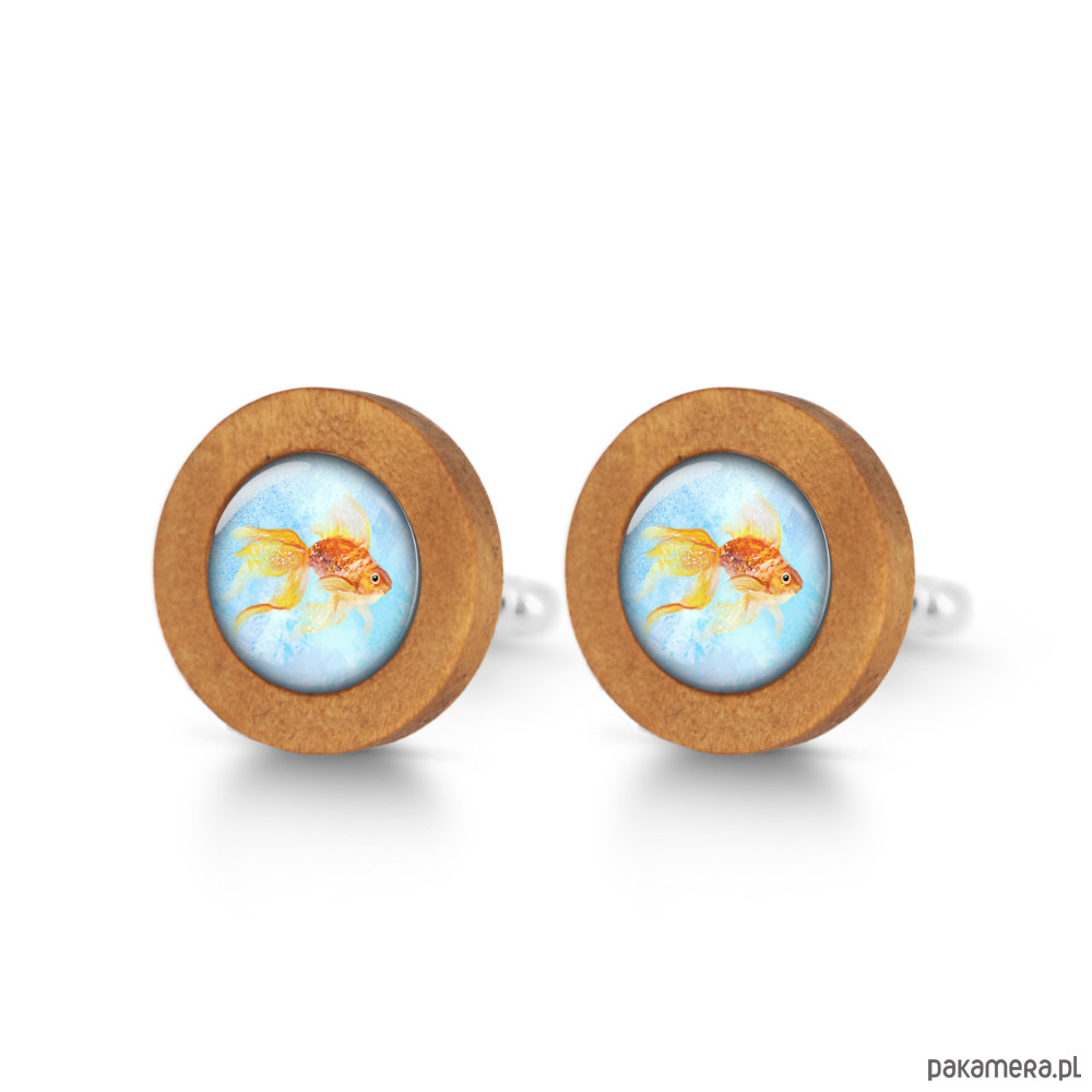 Złota rybka - drewniane spinki do mankietów