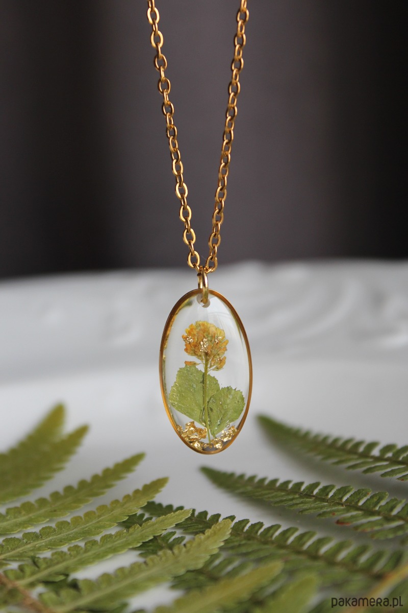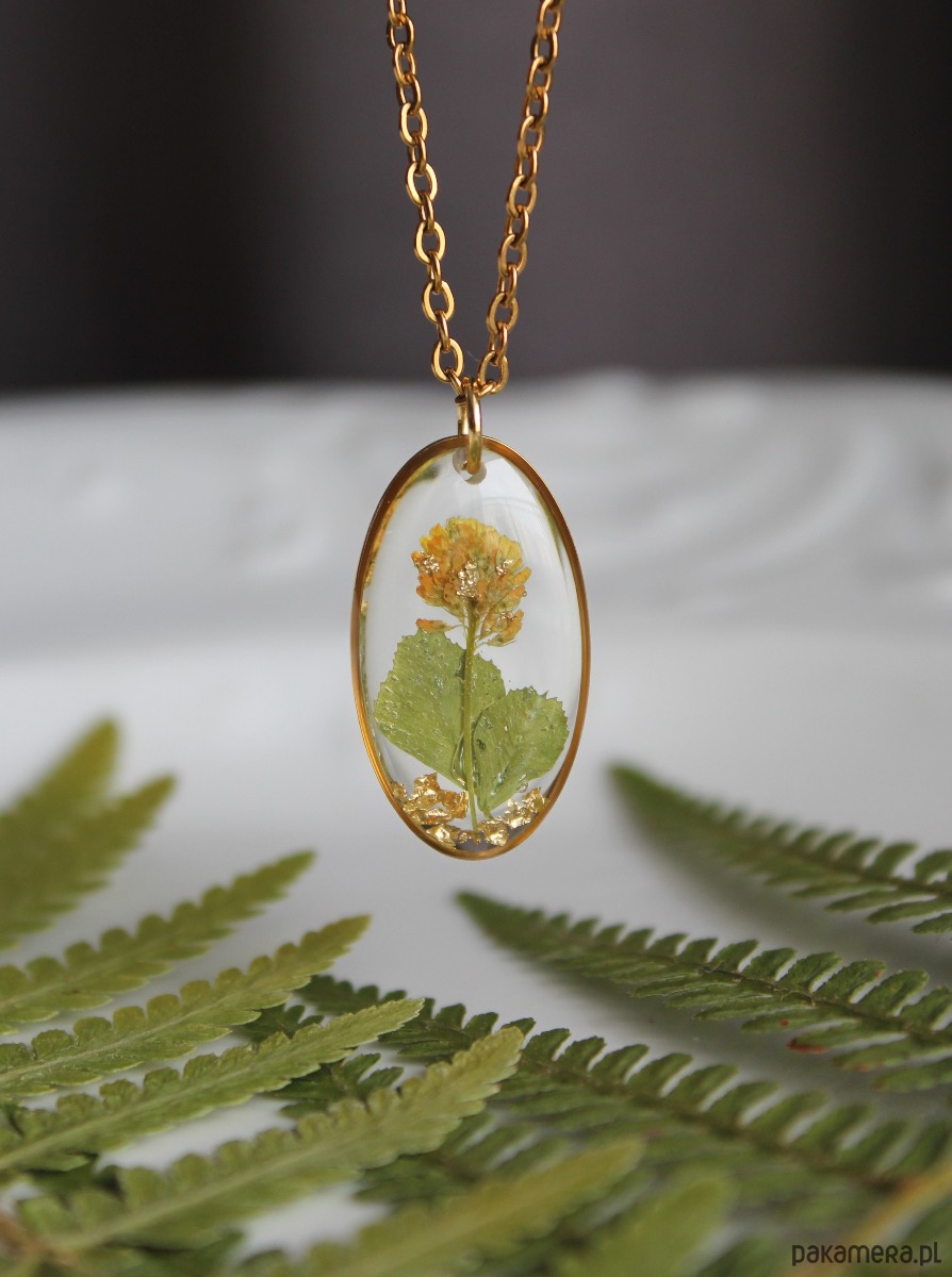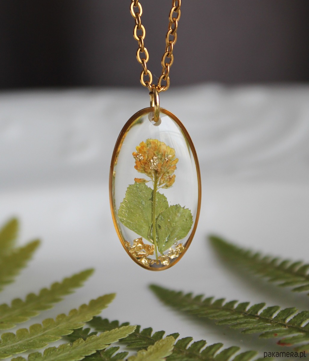 Oferuję Państwu unikalną biżuterię. Zawieszka jest wykonana z suszonych kwiatów i żywicy epoksydowej. Biżuteria jest wspaniałym i oryginalnym prezentem na lata.