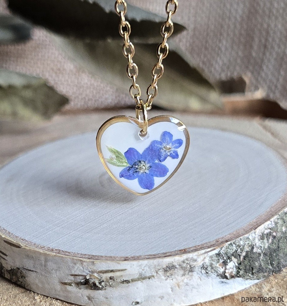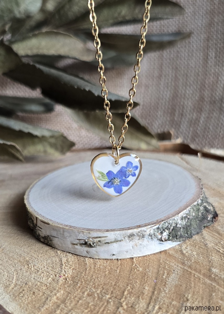 Oferuję Państwu unikalną biżuterię. Zawieszka jest wykonana z suszonych kwiatów i żywicy epoksydowej. Biżuteria jest wspaniałym i oryginalnym prezentem na lata.