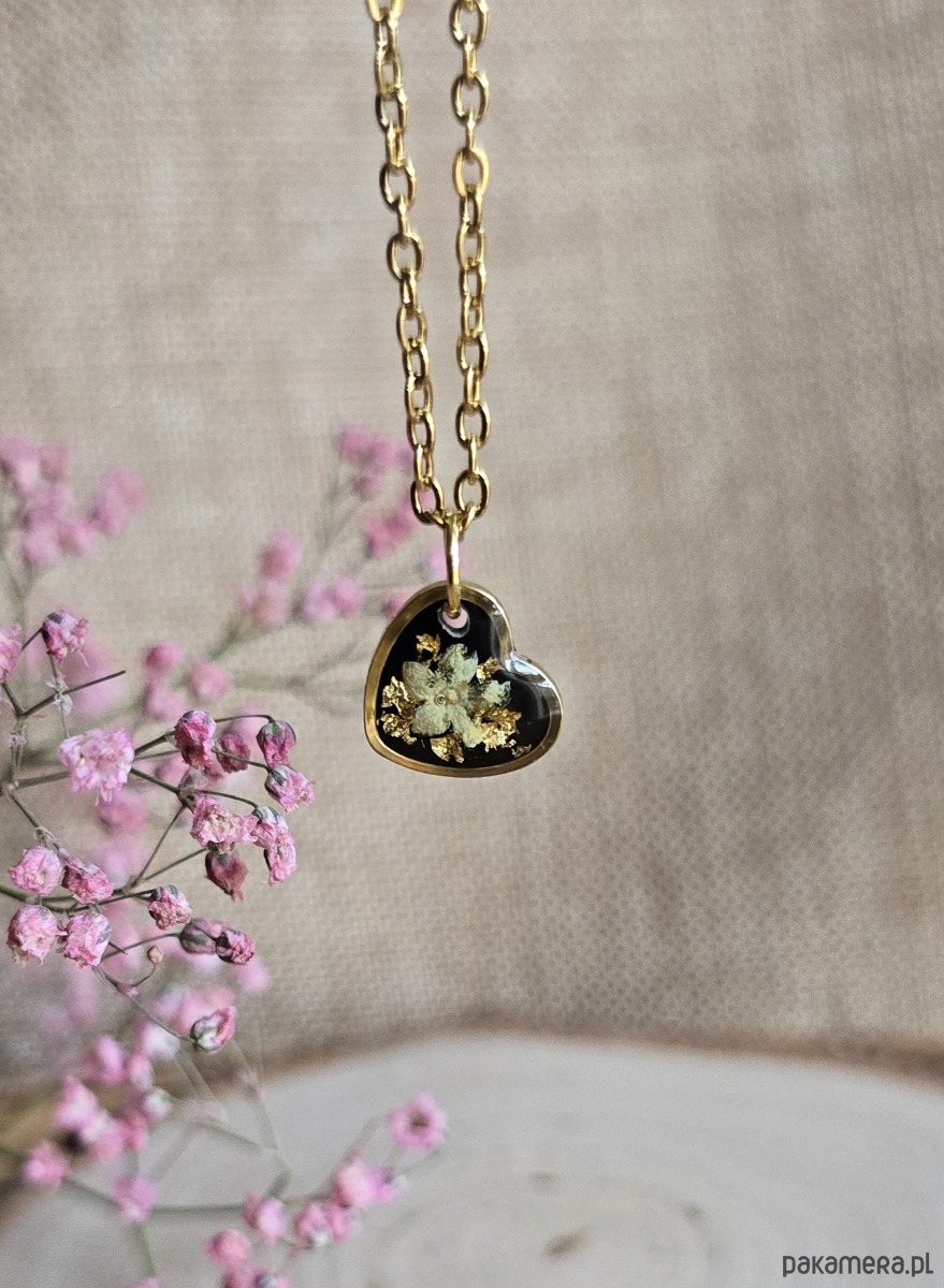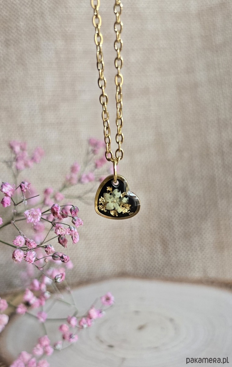 Złota zawieszka wisiorek kwiaty serce serduszko czarne dla dziewczynki