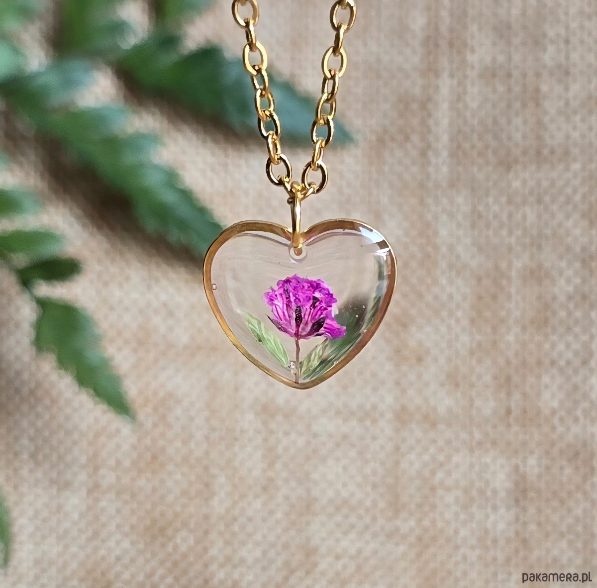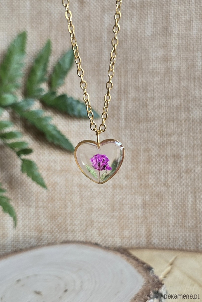 Oferuję Państwu unikalną biżuterię. Zawieszka jest wykonana z suszonych kwiatów i żywicy epoksydowej. Biżuteria jest wspaniałym i oryginalnym prezentem na lata.