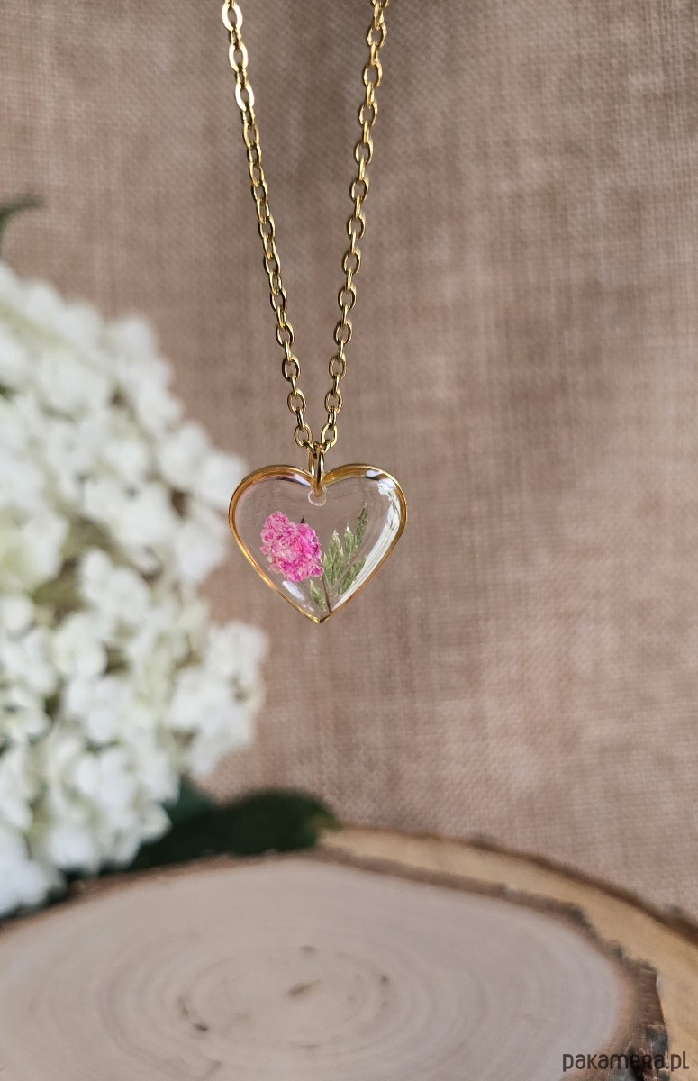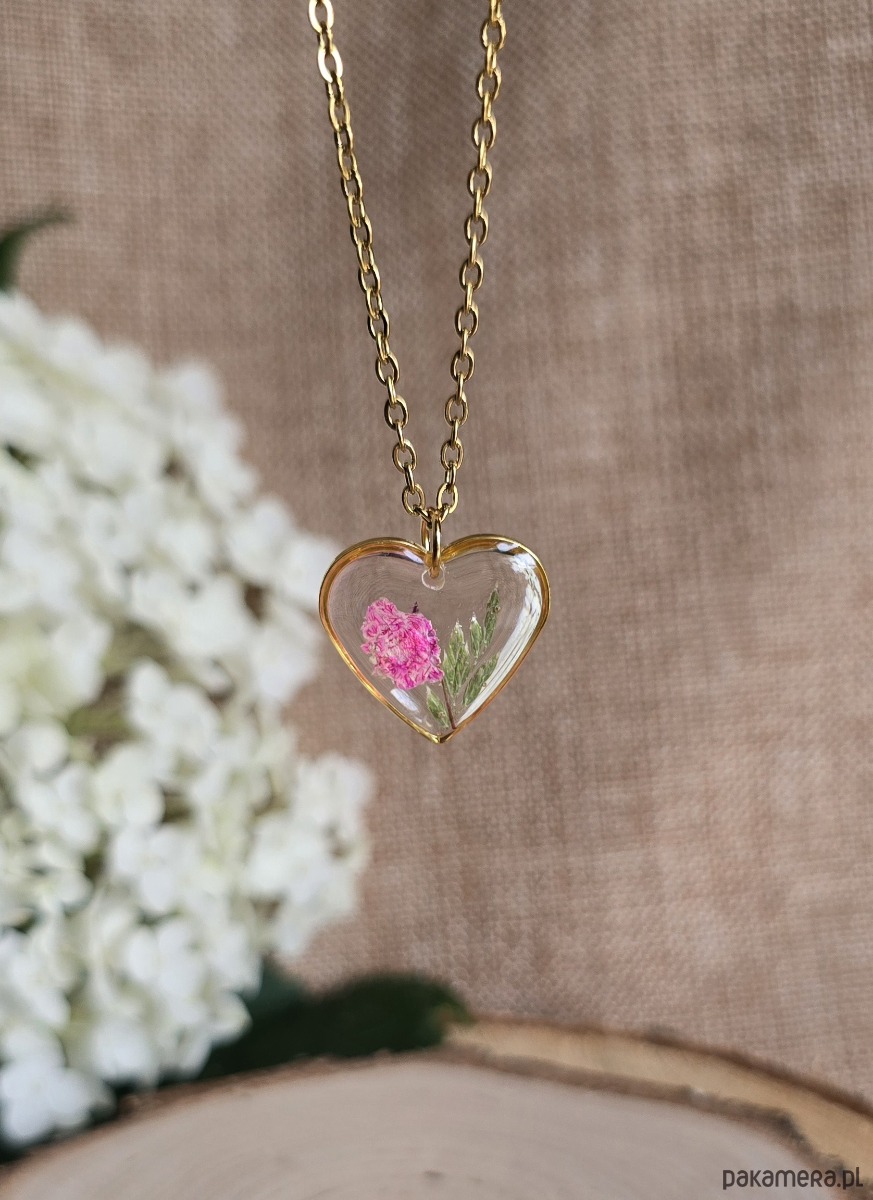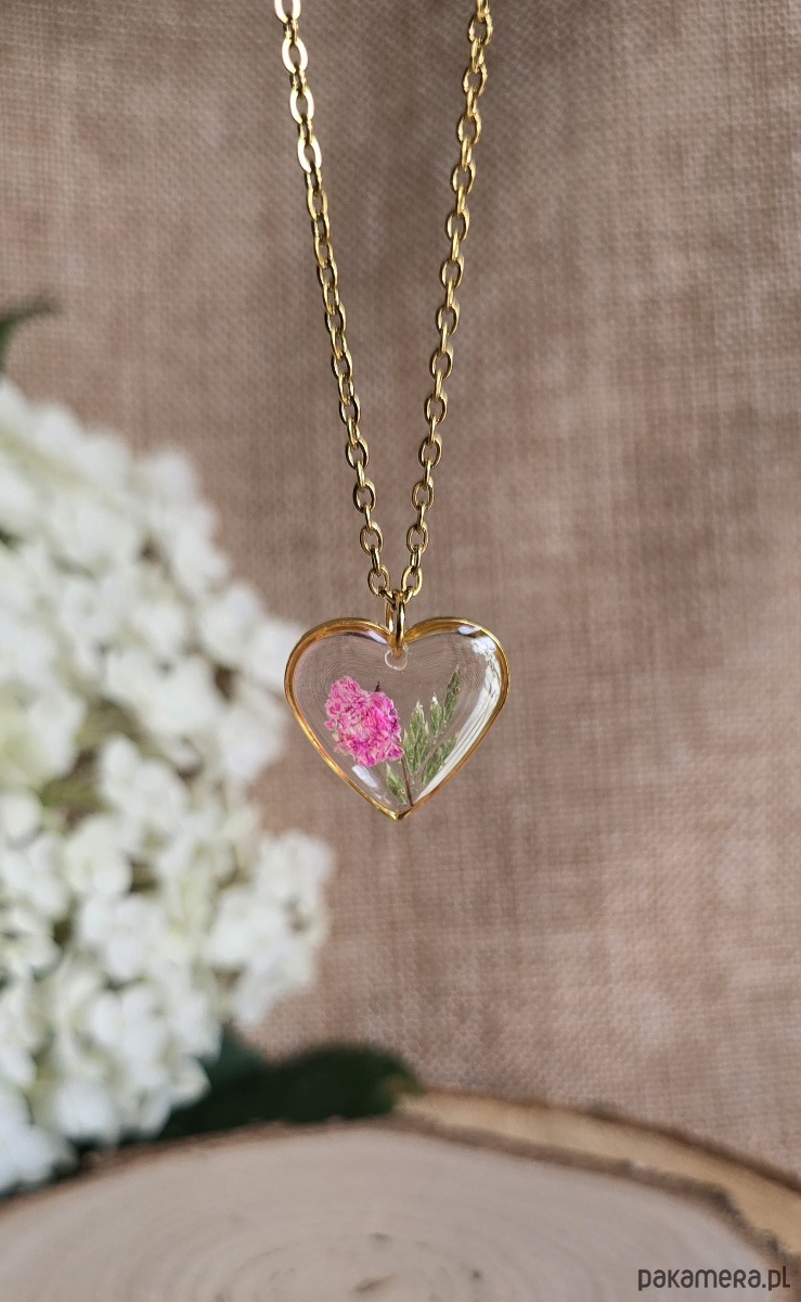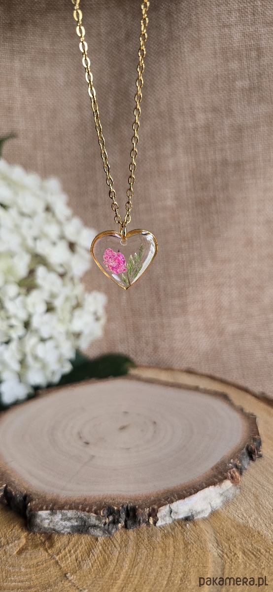Oferuję Państwu unikalną biżuterię. Zawieszka jest wykonana z suszonych kwiatów i żywicy epoksydowej. Biżuteria jest wspaniałym i oryginalnym prezentem na lata.