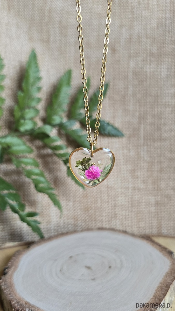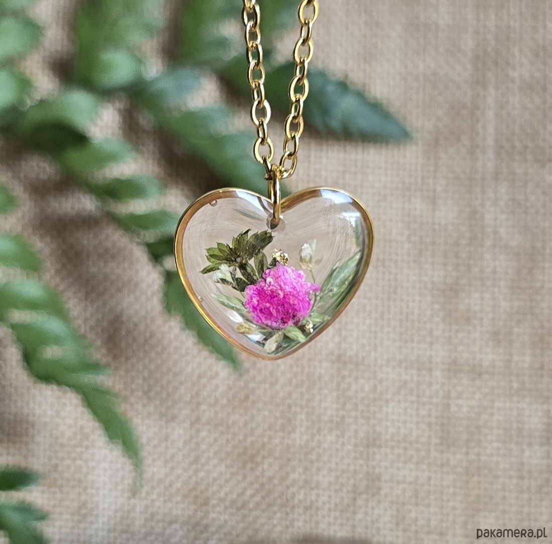 Oferuję Państwu unikalną biżuterię. Zawieszka jest wykonana z suszonych kwiatów i żywicy epoksydowej. Biżuteria jest wspaniałym i oryginalnym prezentem na lata.