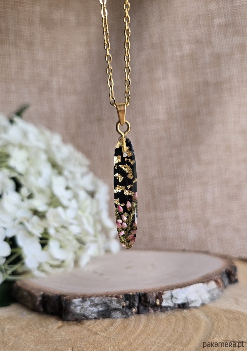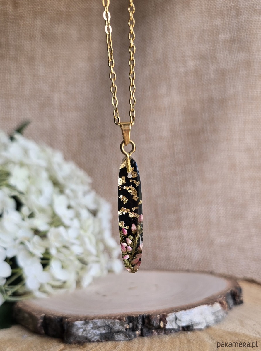 Złota zawieszka złoty wisiorek podłużna wrzos czarna