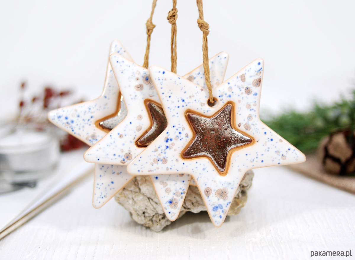 Złote gwiazdki choinkowe - ceramiczne ozdoby świąteczne