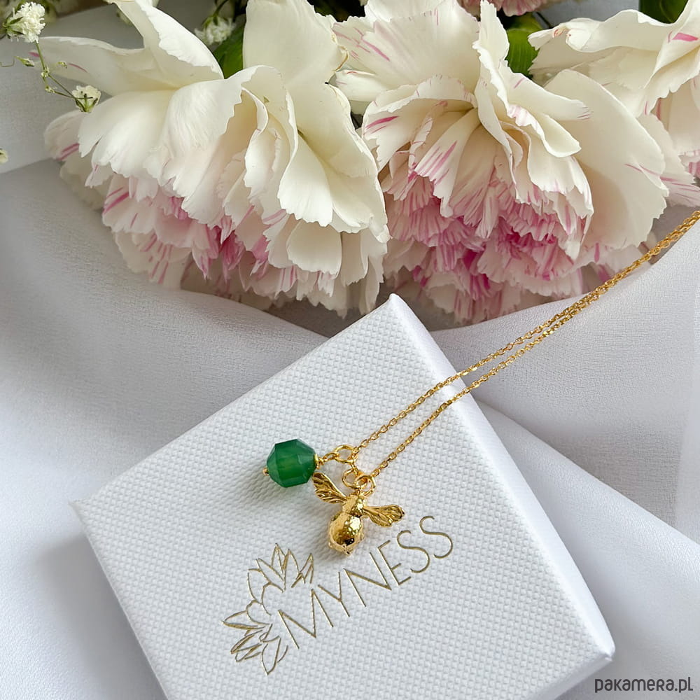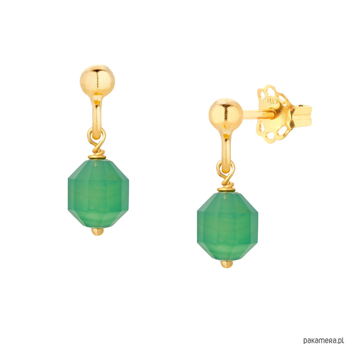 Klasyczne, eleganckie kolczyki ze srebra próby 925 pozłacanego 24-karatowym złotem z zawieszką z kamienia naturalnego (agat).Metal szlachetny: srebro pozłacaneKamień: zielony agat 8 mmPróba srebra: 925Długość kolczyków: ~14 mmRodzaj zapięcia: sztyfty