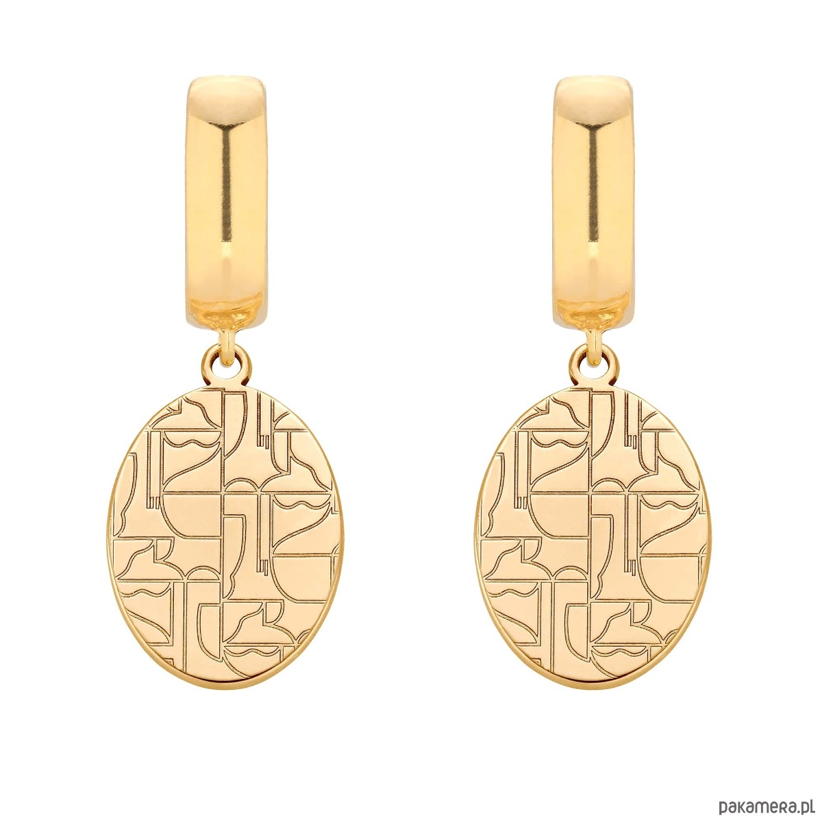 Złote kolczyki z medalionami Art N°1. Zapinane na bigle angielskie. Całość wykonana ze srebra 925 powlekanego 24 karatowym żółtym złotem.