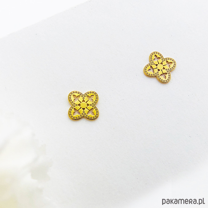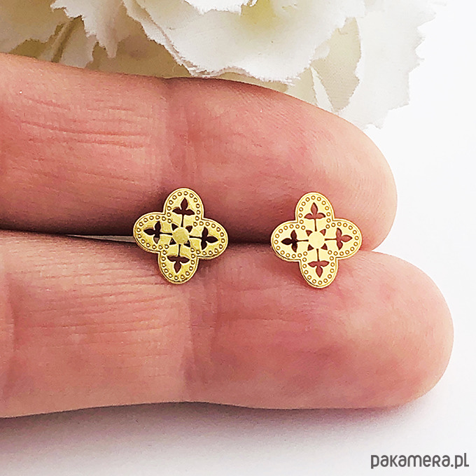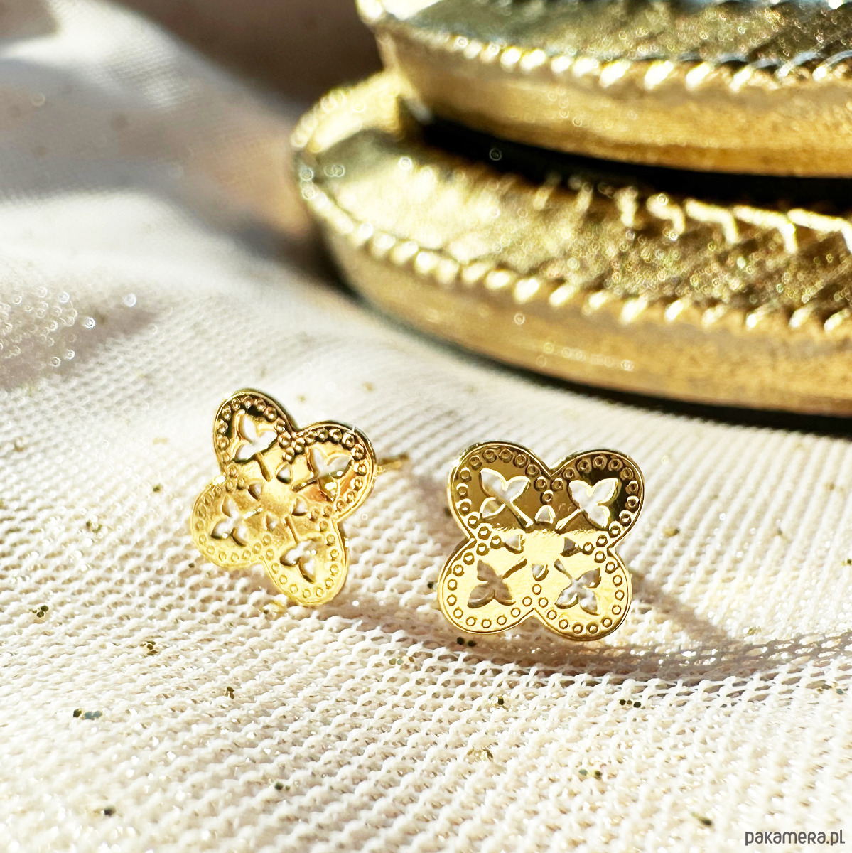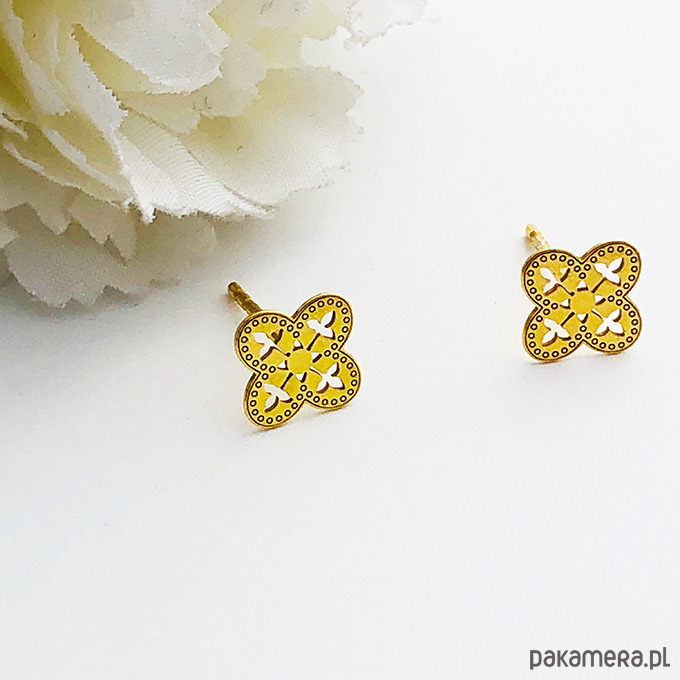 Wyrafinowane eleganckie kolczyki sztyfty. Będą idealne w stylizacji codziennej jak i wieczorowej. Idealne na każdą porę roku. Wykonane ze srebra złoconego 24 k złotem.