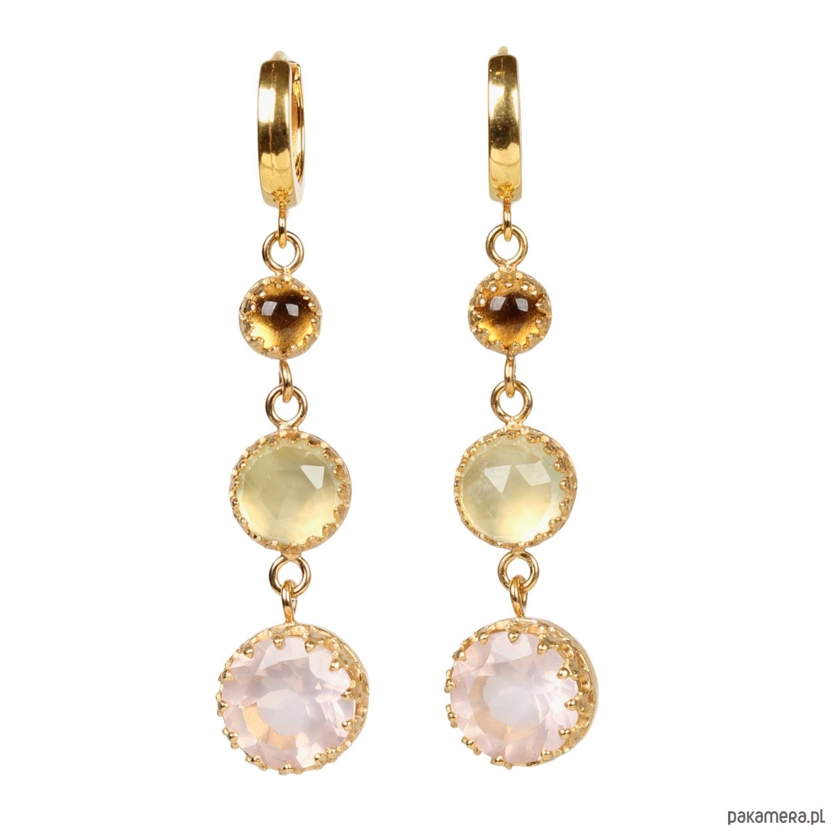 Ręcznie wykonane kolczyki ze srebra pokrytego 24-karatowym złotem z kwarcem różowym, prehnitem i cytrynem