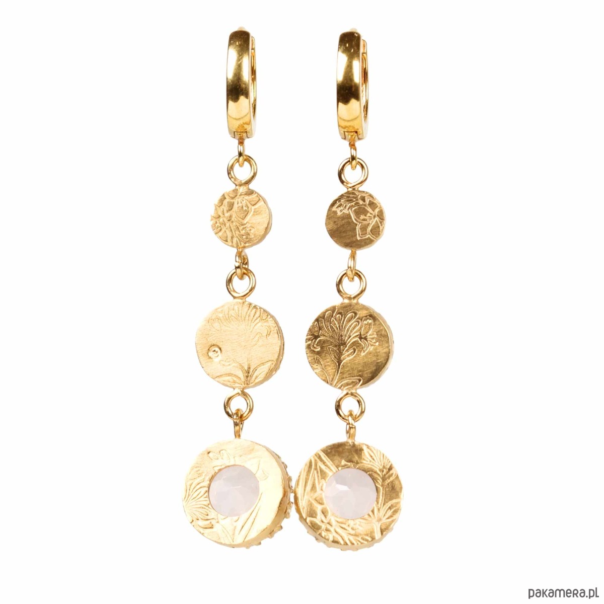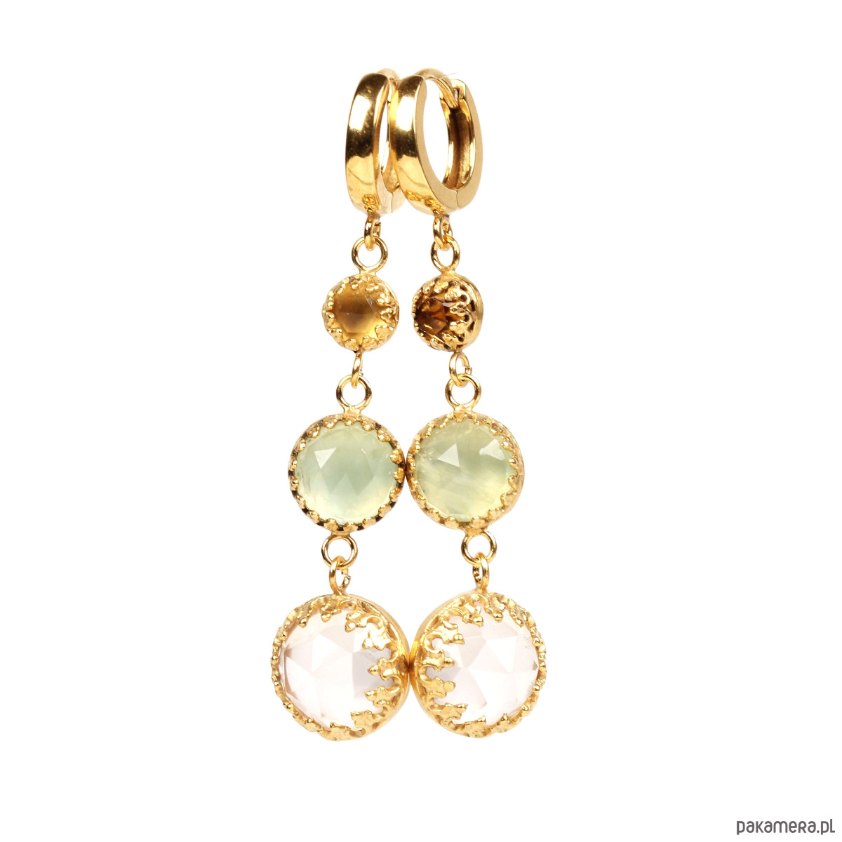 Złote kolczyki Dream z kwarcem różowym, prehnitem i cytrynem